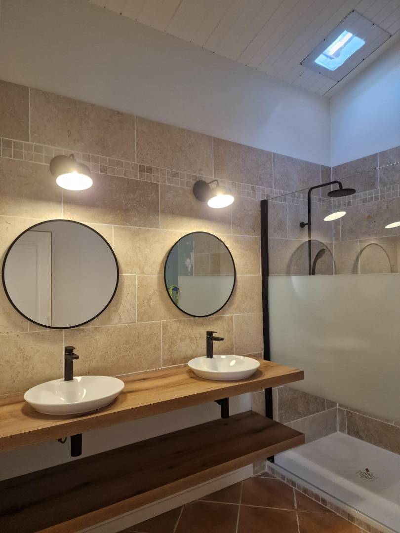 „Grand gite confortable et spacieux. Petit bémol: manque de luminosité du fait des petites fenêtres et la terrasse est au rez-de-chaussée alors que le gîte est a l'étage. Excellent accueil, bon équipement avec plancha et piscine. Séjour a la campagne au cœur d'une oliveraie très agréable.“