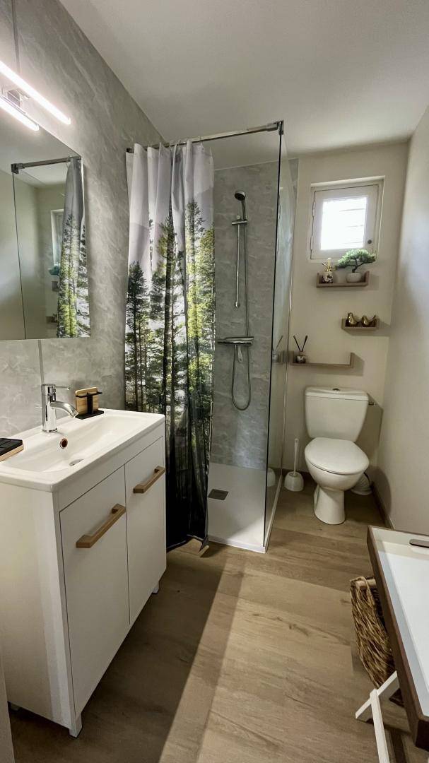 „Chemin d'accès au gite peu carrossable sur les 300 derniers mètresEau chaude et froide ingérable; elle passe du chaud au froid (sans crier gare) Clim très bien“