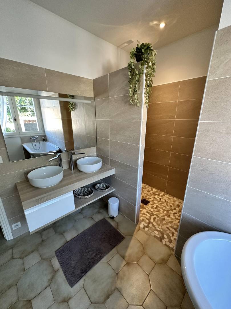„Nous avons passé une excellente semaine dans cette grande maison avec jardin aménagé: Coin repas, coin détente et piscine, même si nous étions un peu hors saison pour profiter de ce dernier équipement. Chaque pièce est parfaitement équipée et élégamment décorée. La propreté irréprochable et la literie d’une grande qualité, ce qui a été très apprécié de notre petit groupe « d’anciens ». Claire met à la disposition de ses locataires une multitude d’informations touristiques et s’est montrée très réactive pour répondre à nos questions. En bref un séjour très agréable et de belles découvertes !“