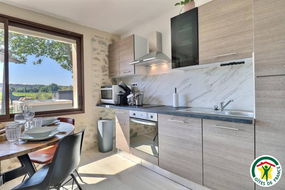 „Une jolie petite maison au milieu des vignes et des oliviers. Tout le confort à portée de main. Incroyablement silencieux. Fortement recommandé pour tous ceux qui souhaitent se détendre.“