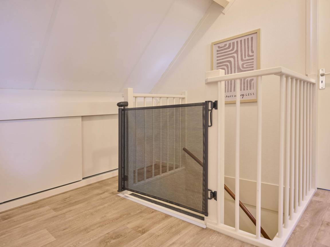In der 1. Etage(über steile Treppe): Schlafzimmer mit Einzelbett(Boxspring, 90 x 200 cm) , Schlafzimmer mit Doppelbett(Boxspring, 180 x 200 cm), 1x Kinderbett (ohne Bettwäsche) , Flur mit Waschbecken , Treppenschutzgitter