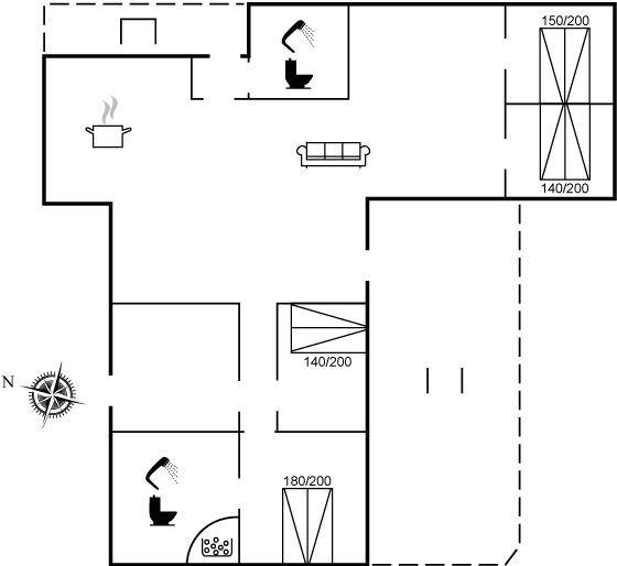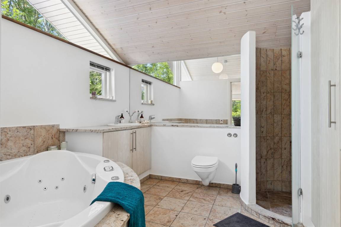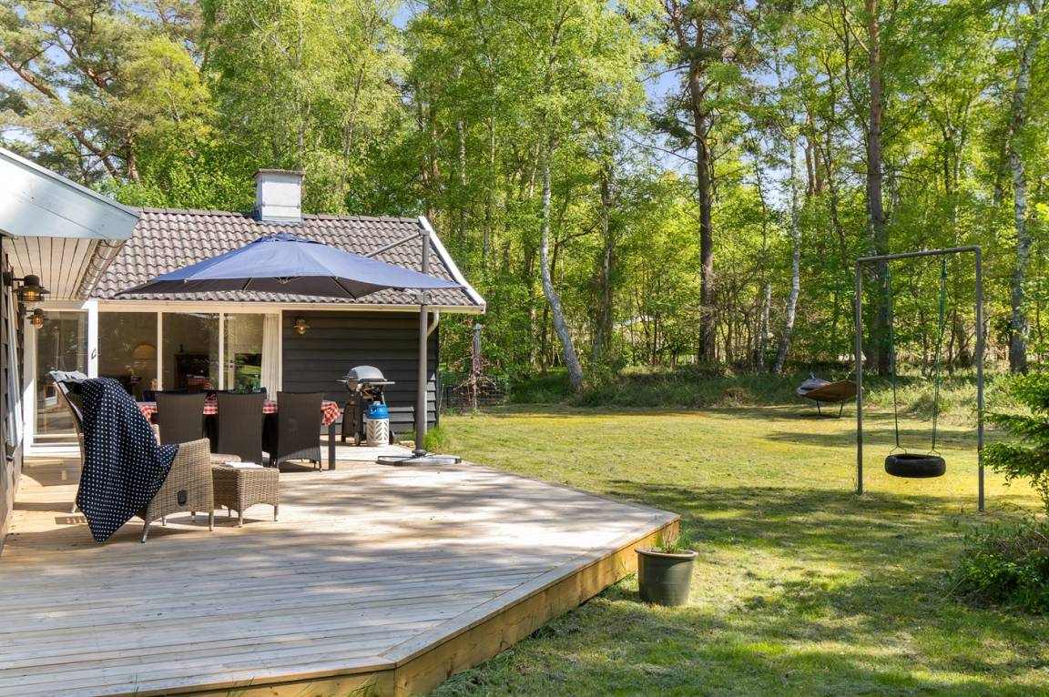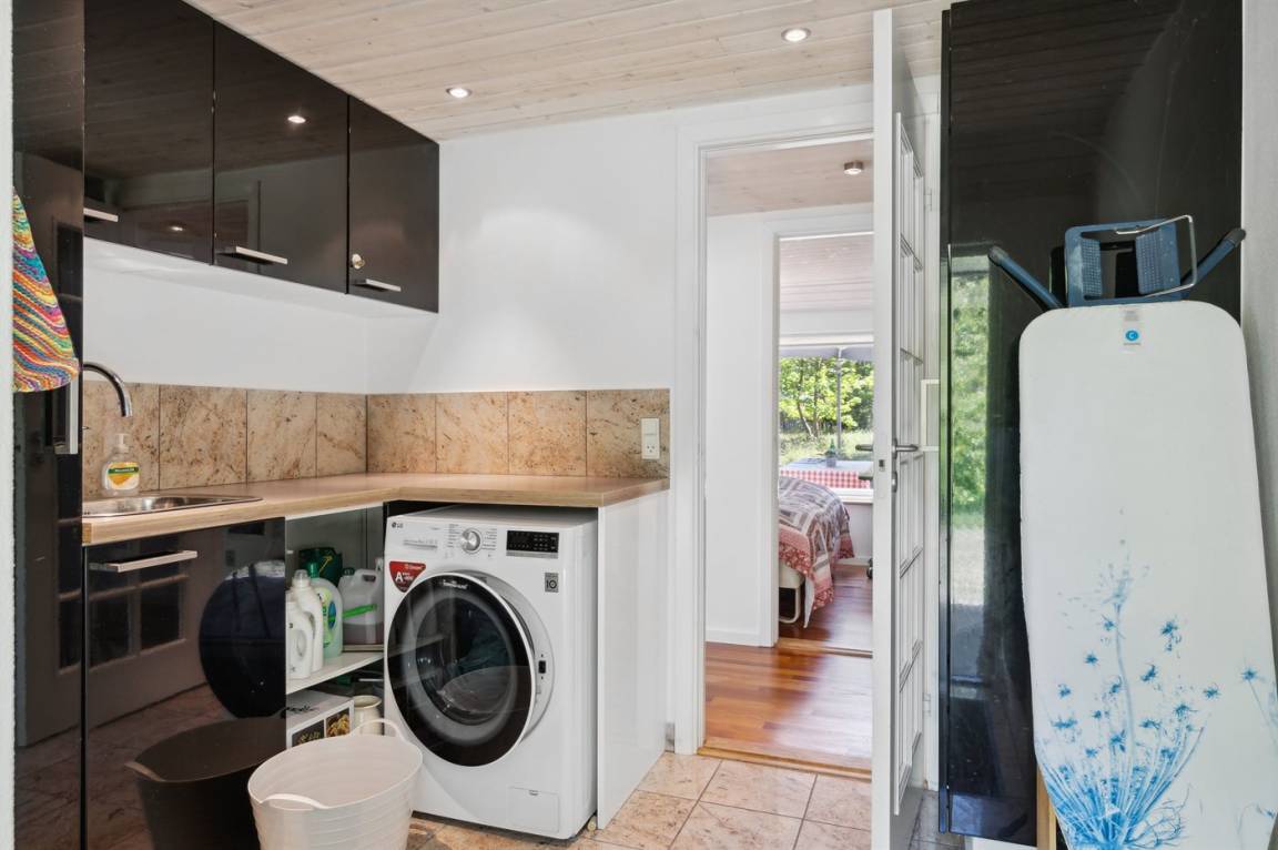 Im Haus gibt es einen großen offenen Gemeinschaftsbereich, der Küche, Essbereich und Wohnzimmer umfasst. Hier ist viel Platz für einen schönen, erholsamen Urlaub. Es gibt 4 Schlafzimmer sowie 2 Badezimmer, die beide Duschnische und Fußbodenheizung haben. Im Hauswirtschaftsraum ist eine Waschmaschine vorhanden. Auf der großen Holzterrasse und im Garten gibt es reichlich Gelegenheit, den Sommer und das schöne Wetter zu genießen.