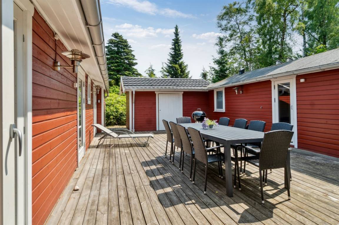 DraußenDie Ferienunterkunft liegt auf einem 1866 m² großen Gartengrundstück. Die Entfernung zum Meer beträgt 1300 m. Die Entfernung zum Fjord beträgt 1600 m. Die nächste Einkaufsmöglichkeit liegt 1350 m entfernt. In einem Abstand von 8450 m gibt es einen Golfplatz. Es steht ein offenes Terrassenareal zur Verfügung. Es steht ein Grill zur Verfügung. Parkplatz auf dem Grundstück.