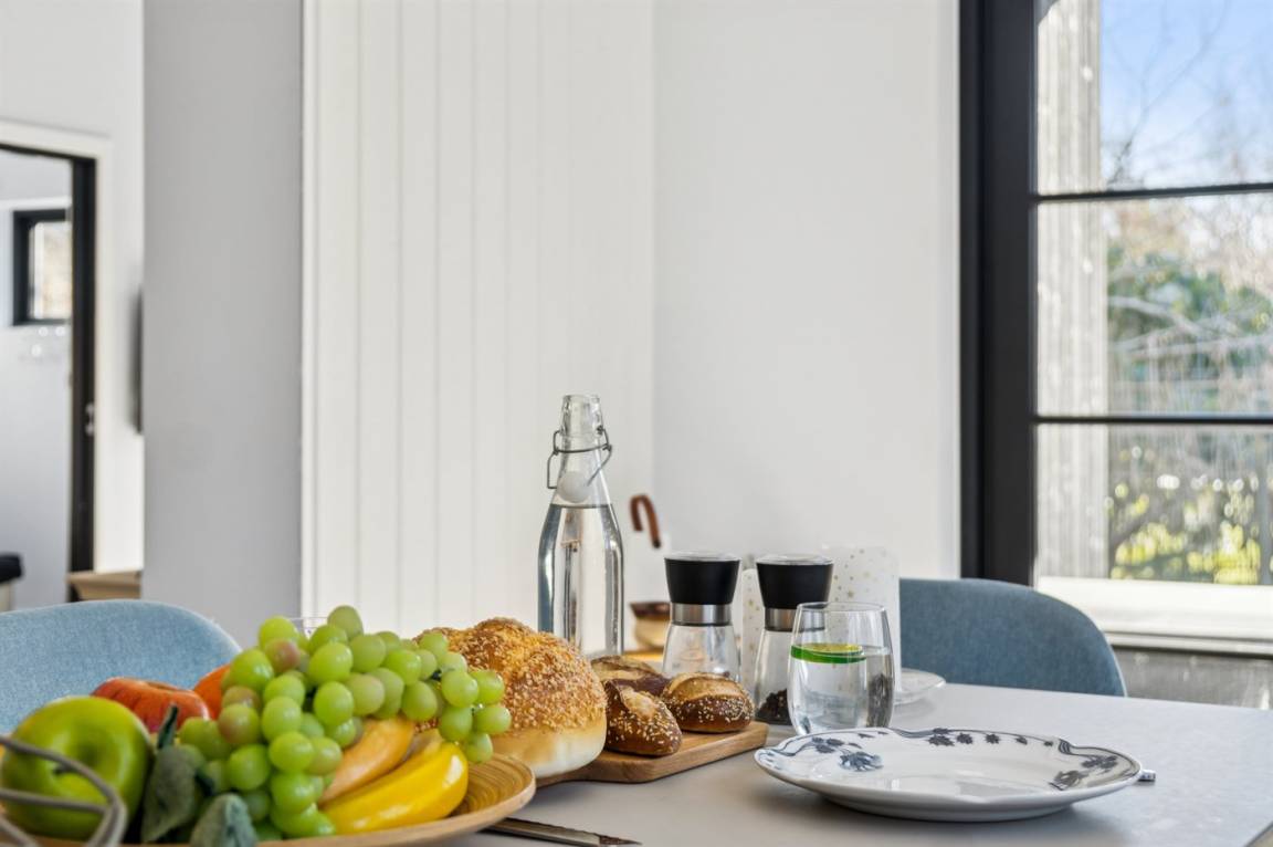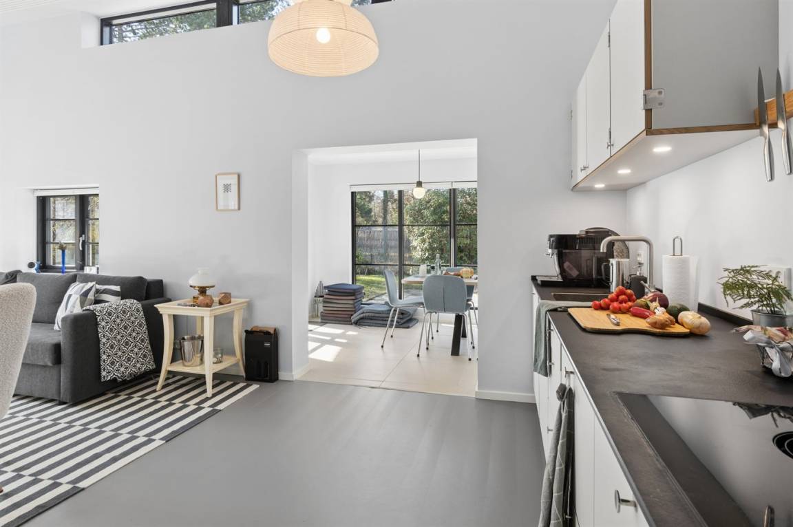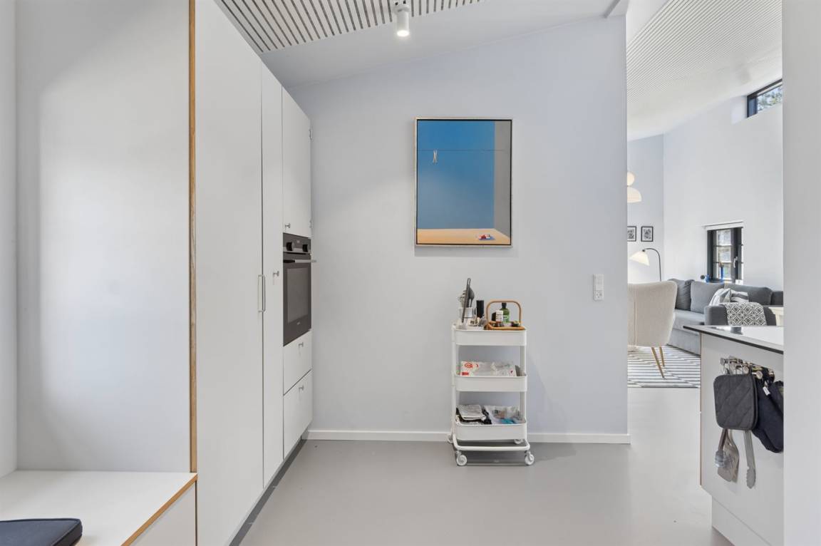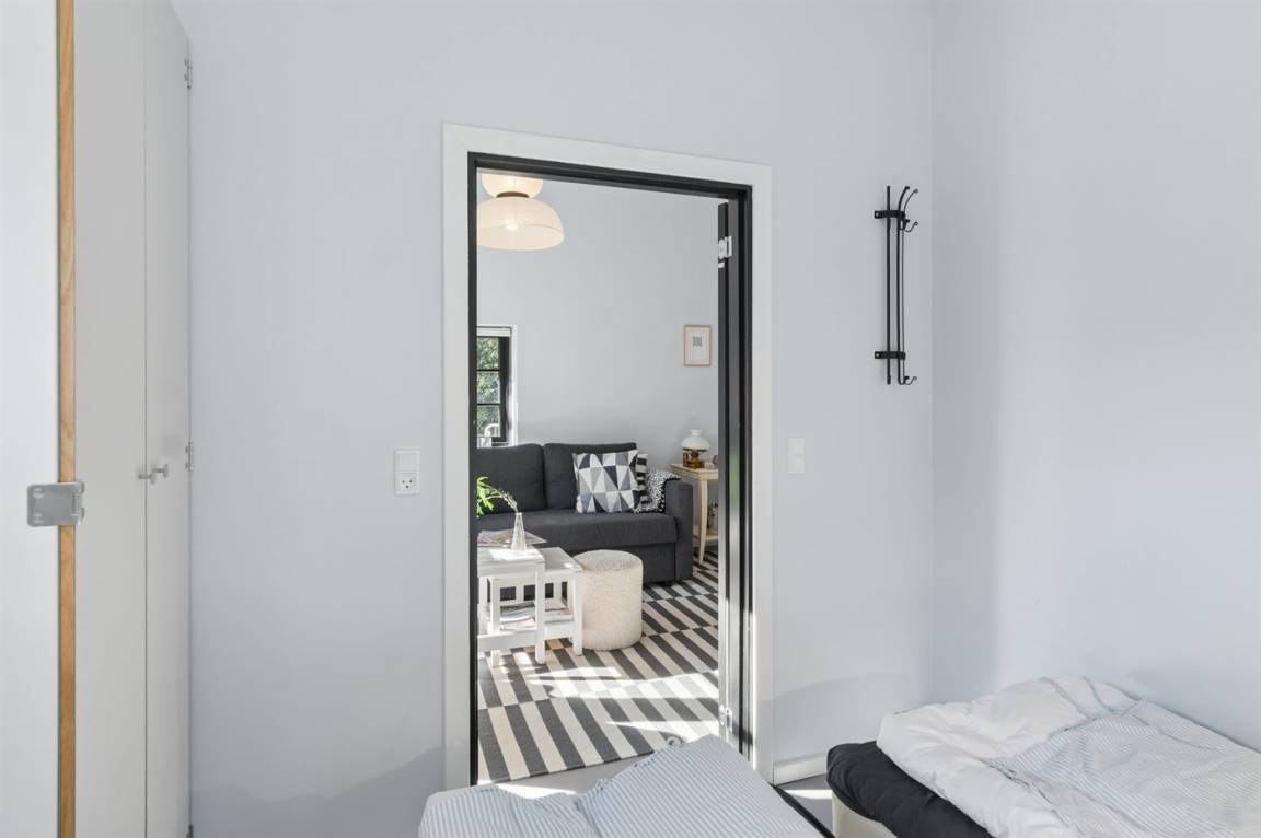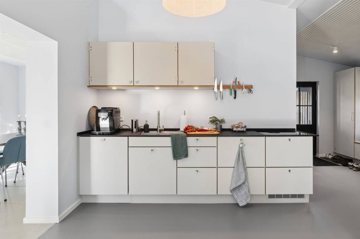 Die Wohnfläche ist offen und funktional, und die Küche sowie der Wohnbereich sind miteinander kombiniert – perfekt für entspannte Stunden und fürs gemütliche Beisammensein. Die modernen Materialien und klaren Linien schaffen eine entspannte und zeitgemäße Atmosphäre. Mit der Luft-Luft-Wärmepumpe und vollständiger Isolierung in Wänden, Dach und Böden kann das Haus das ganze Jahr über genutzt werden.