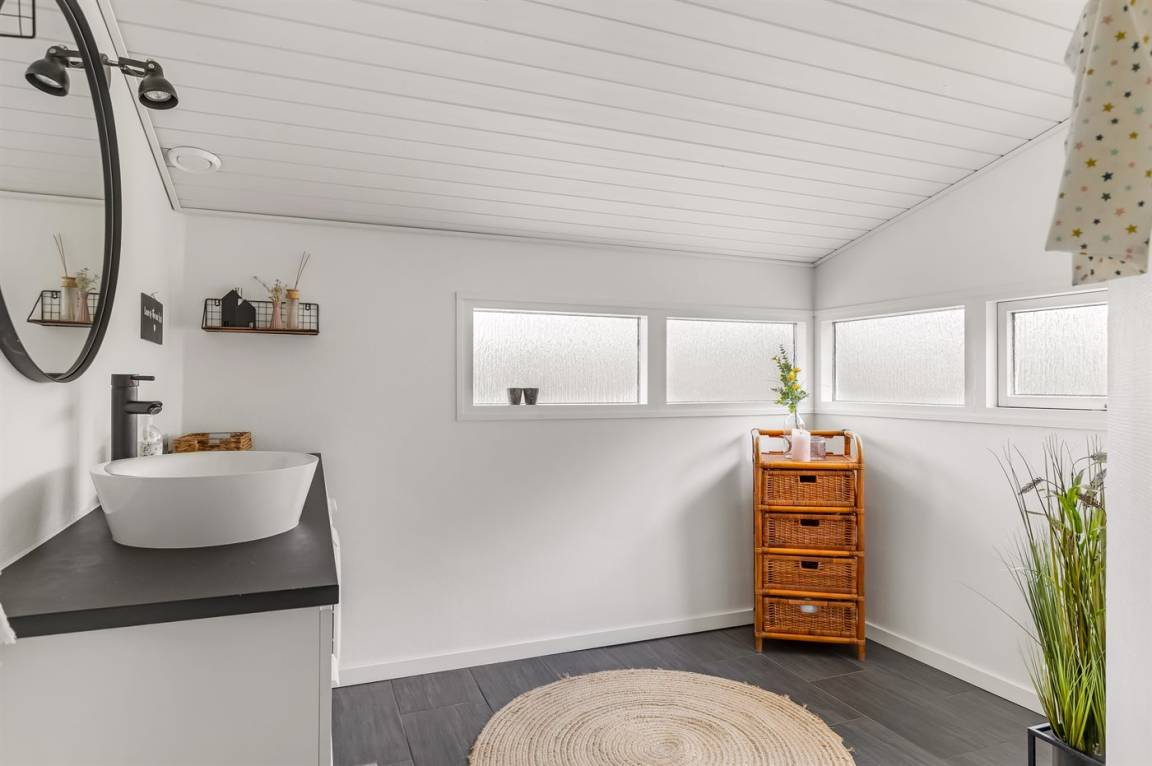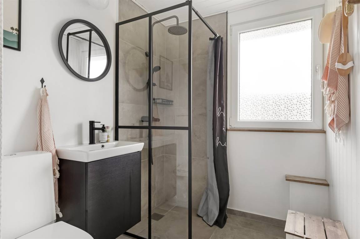 WC und BadEs gibt 1 Badezimmer mit Duschnische und 2 Toiletten, davon 1 Gästetoilette. Fußbodenheizung in 1 Badezimmer. Fußbodenheizung in der Gästetoilette.