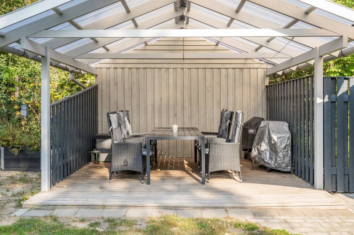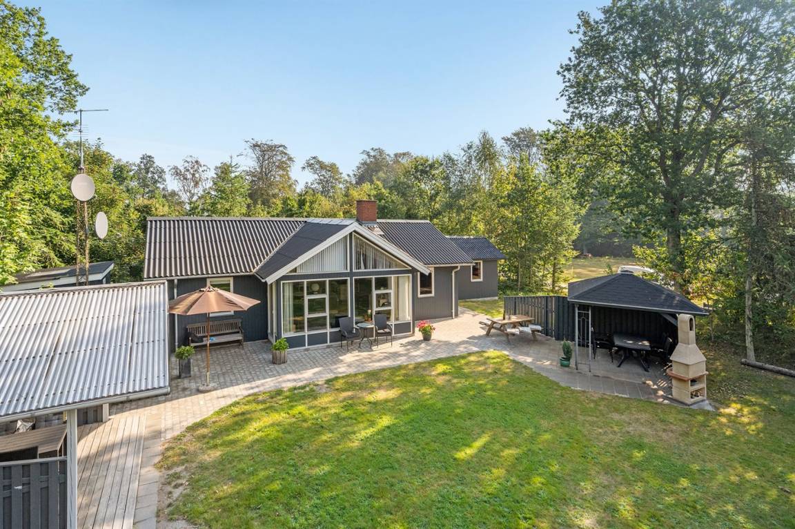 Hübsches, gepflegtes Ferienhaus in Sackgassenlage inmitten malerischer Natur nah am Wasser. Das Ferienhaus ist geräumig, gut ausgestattet und verfügt über schöne Terrassenbereiche, die teilweise überdacht sind.