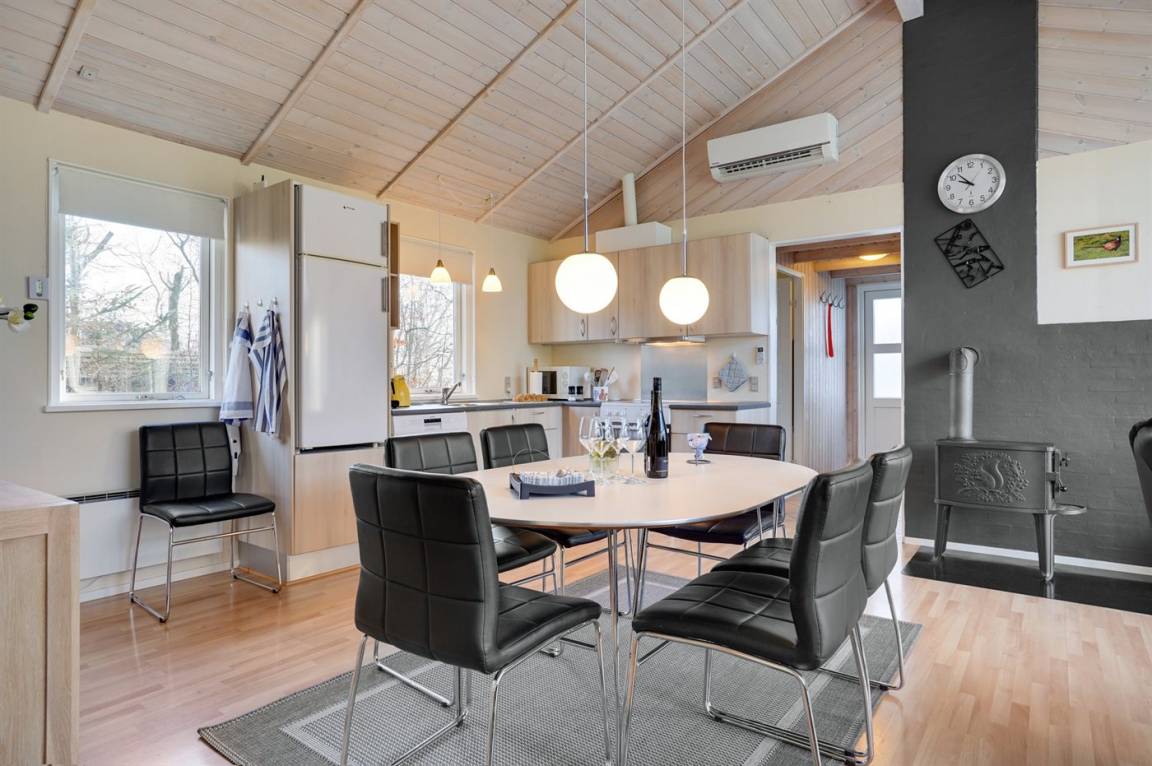 EinrichtungDas Ferienhaus eignet sich für 6 Personen sowie 1 Kleinkind bis zu 3 Jahren. Die Ferienunterkunft hat eine Wohnfläche von 84 m² und wurde 1998 gebaut. 2018 wurde die Ferienunterkunft teilweise renoviert. Haustiere dürfen nicht mitgebracht werden. Die Ferienunterkunft ist mit energiesparender Wärmepumpe ausgestattet. Die Ferienunterkunft ist mit Waschmaschine ausgestattet. Tiefkühlmöglichkeit mit 10 Liter Nutzinhalt. Es gibt außerdem einen Kaminofen. Für die jüngsten Feriengäste ist 1 Kinderhochstuhl vorhanden.