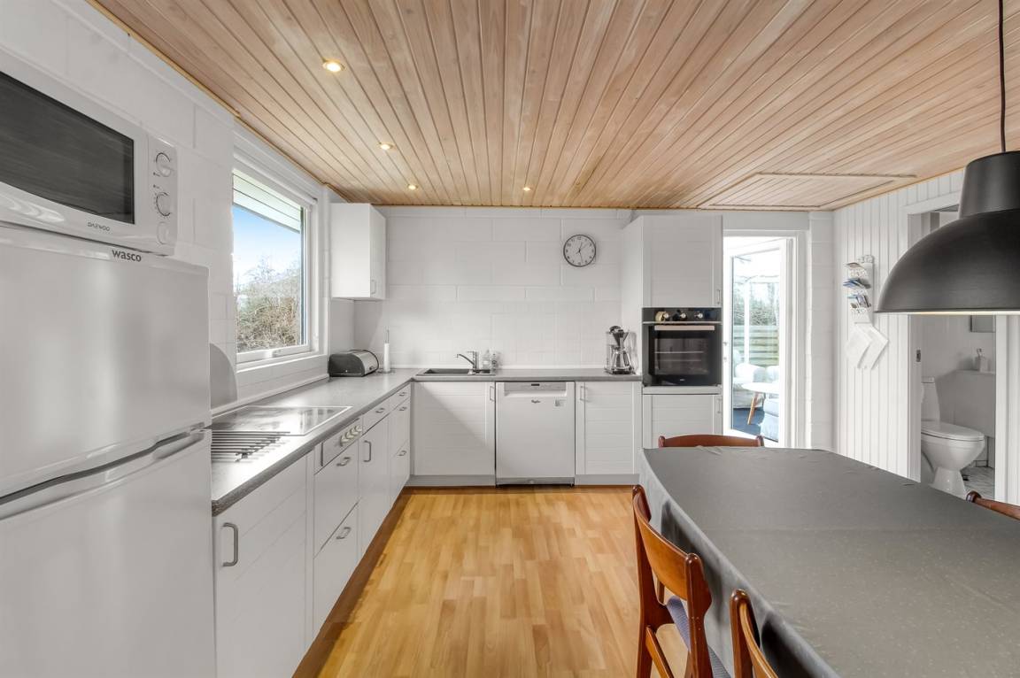 Innen präsentiert sich das Haus hell und einladend. Der Mittelpunkt des Hauses ist die schöne offene Wohnküche. Die Raumaufteilung ist durchdacht, und es gibt reichlich Platz – zum Beispiel für eine Familie mit Kindern, die auch die Großeltern mit in den Urlaub nehmen möchte. In diesem Ferienhaus sind viele Möglichkeiten gegeben.
