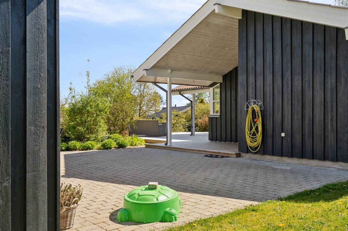 DraußenDie Ferienunterkunft liegt auf einem 1200 m² großen Gartengrundstück. Die Entfernung zum Meer beträgt 300 m. Die nächste Einkaufsmöglichkeit liegt 6000 m entfernt. Es steht ein offenes Terrassenareal zur Verfügung. Außerdem gibt es überdachte Terrasse. Schaukel. Sandkasten.Lagerfeuerstelle. Es steht ein Grill zur Verfügung. Es steht ein Carport zur Verfügung. Parkplatz auf dem Grundstück.