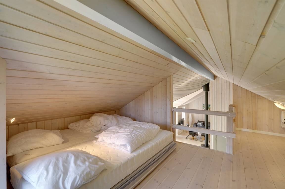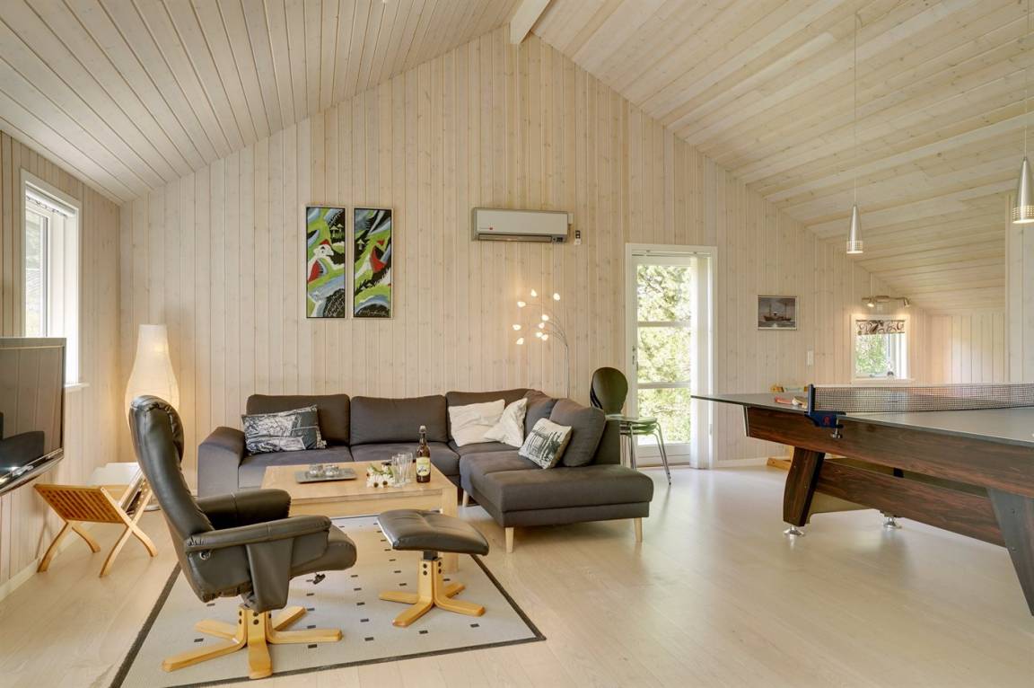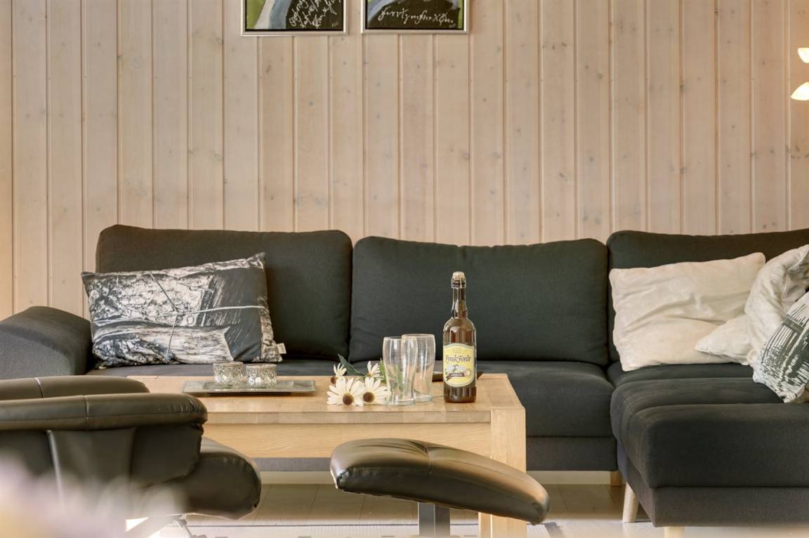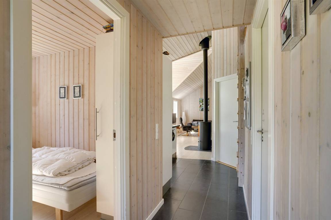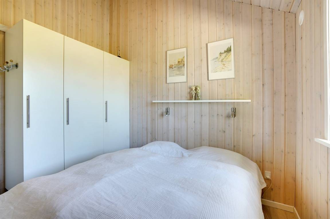 Dieses schöne und geräumige Ferienhaus liegt auf einem Gartengrundstück mit Platz für Aktivitäten im Freien - nur 150 m vom Wasser entfernt. Die 2 Schlafplätze im Alkoven befinden sich im Wohnzimmer.