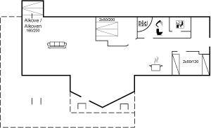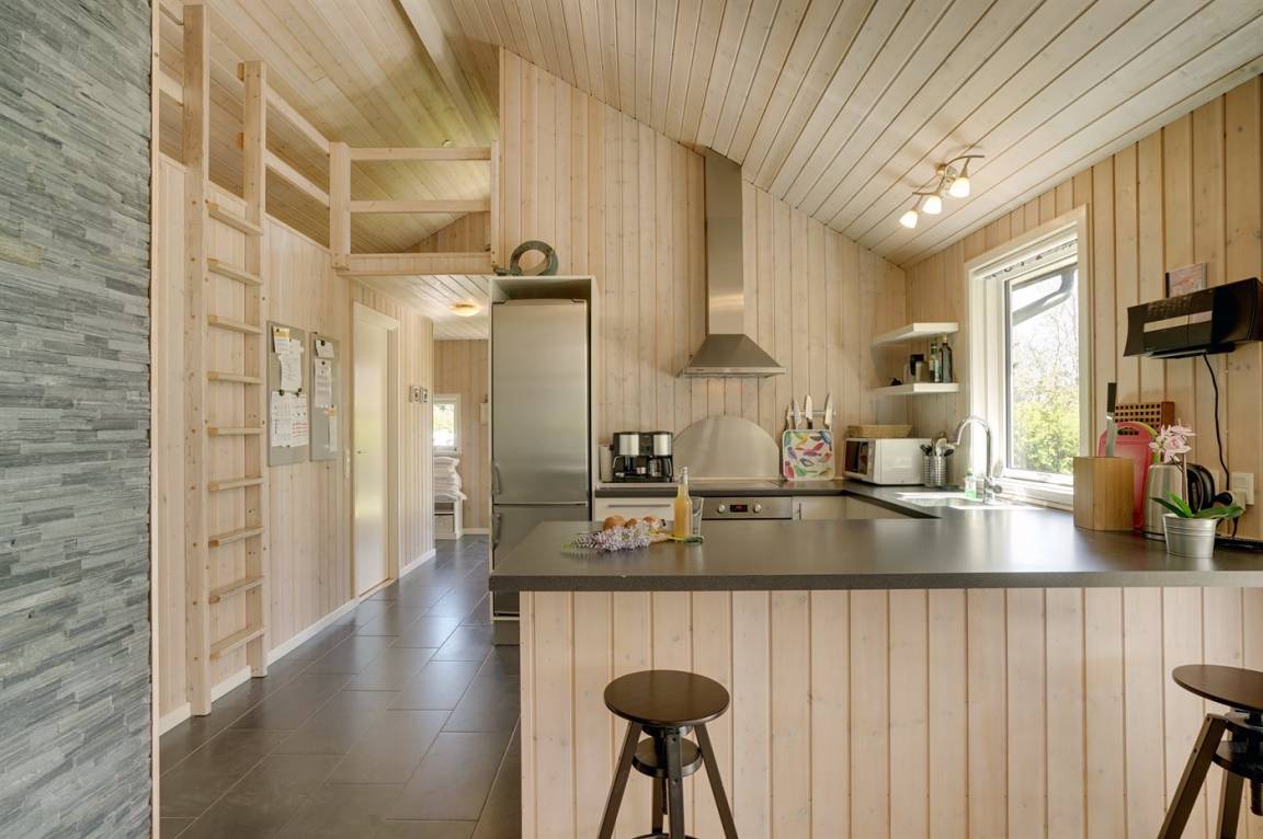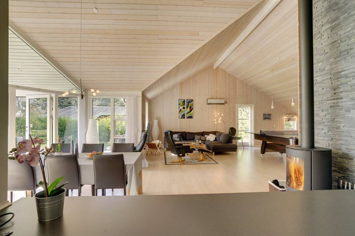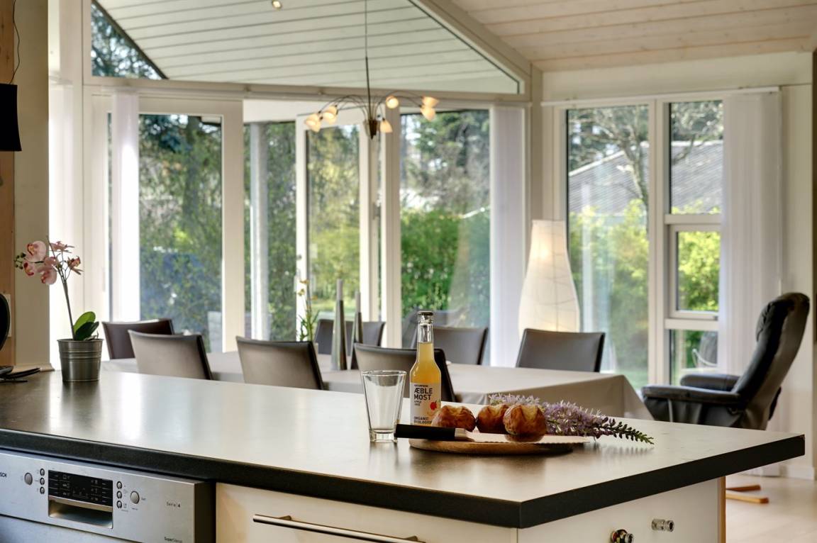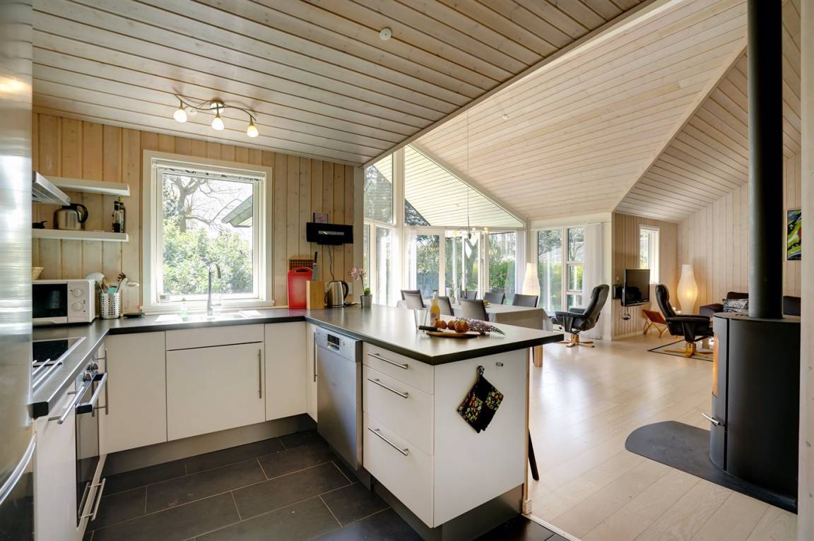 Dieses schöne und geräumige Ferienhaus liegt auf einem Gartengrundstück mit Platz für Aktivitäten im Freien - nur 150 m vom Wasser entfernt. Die 2 Schlafplätze im Alkoven befinden sich im Wohnzimmer.