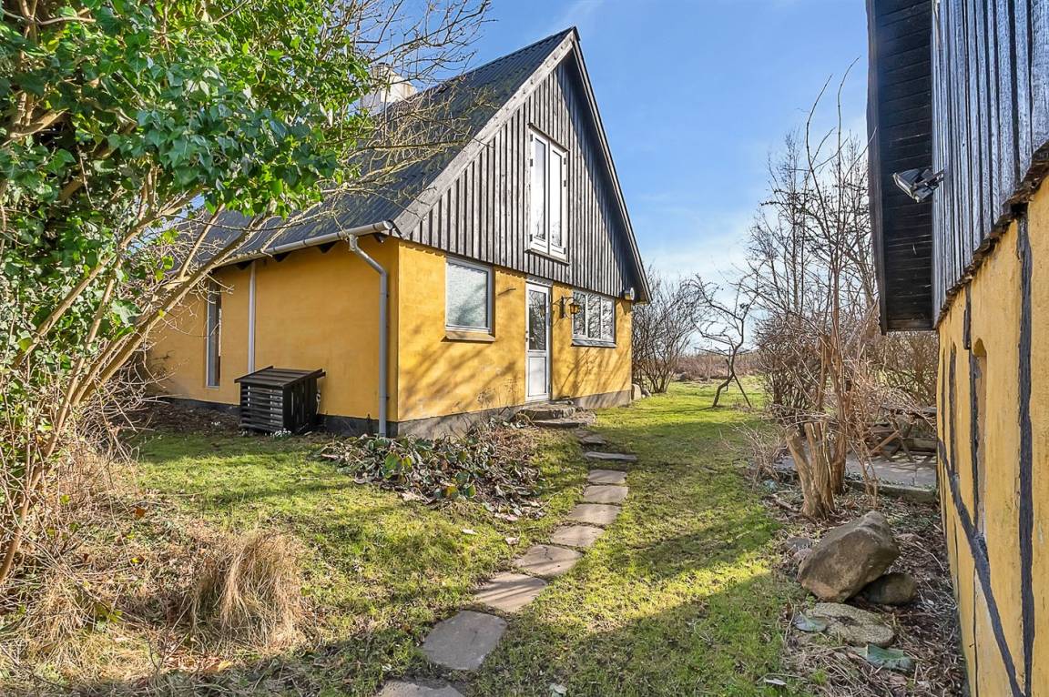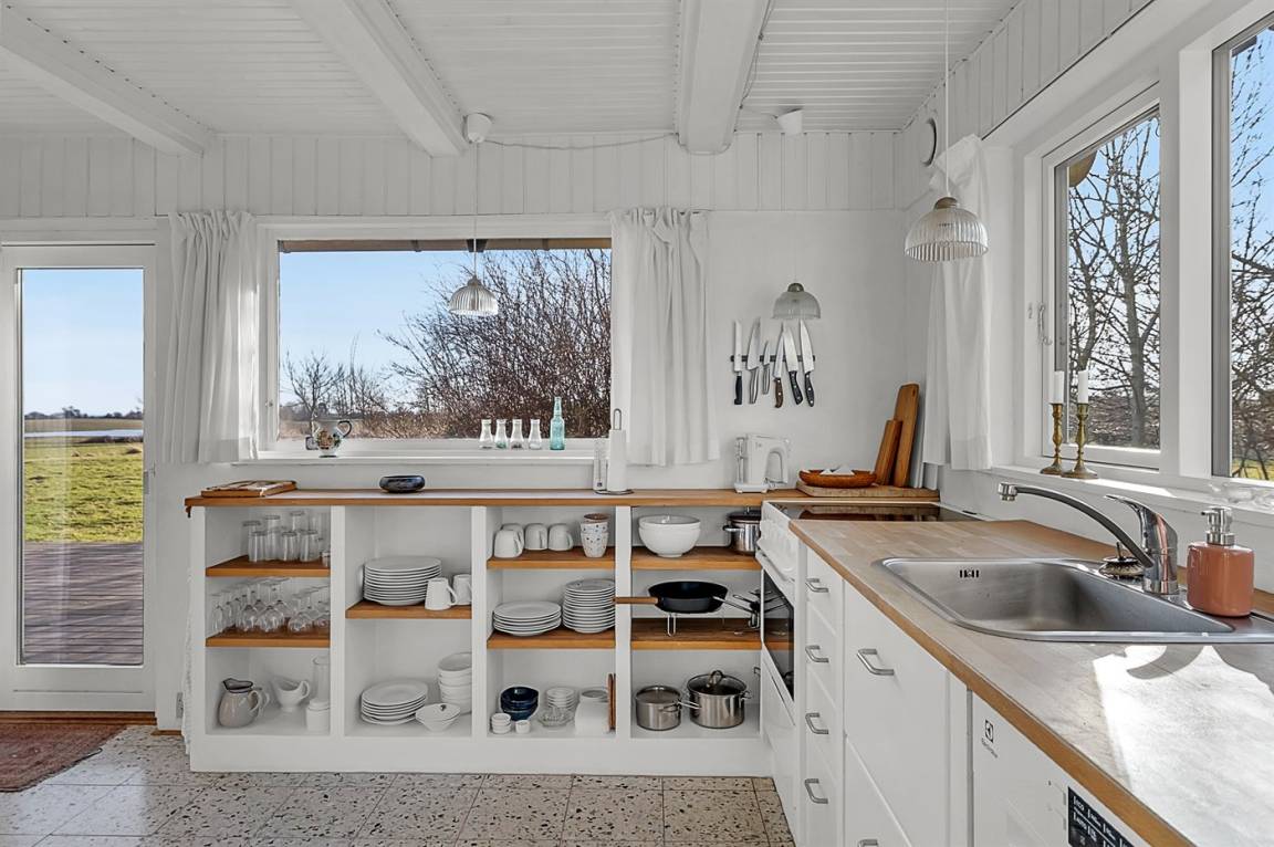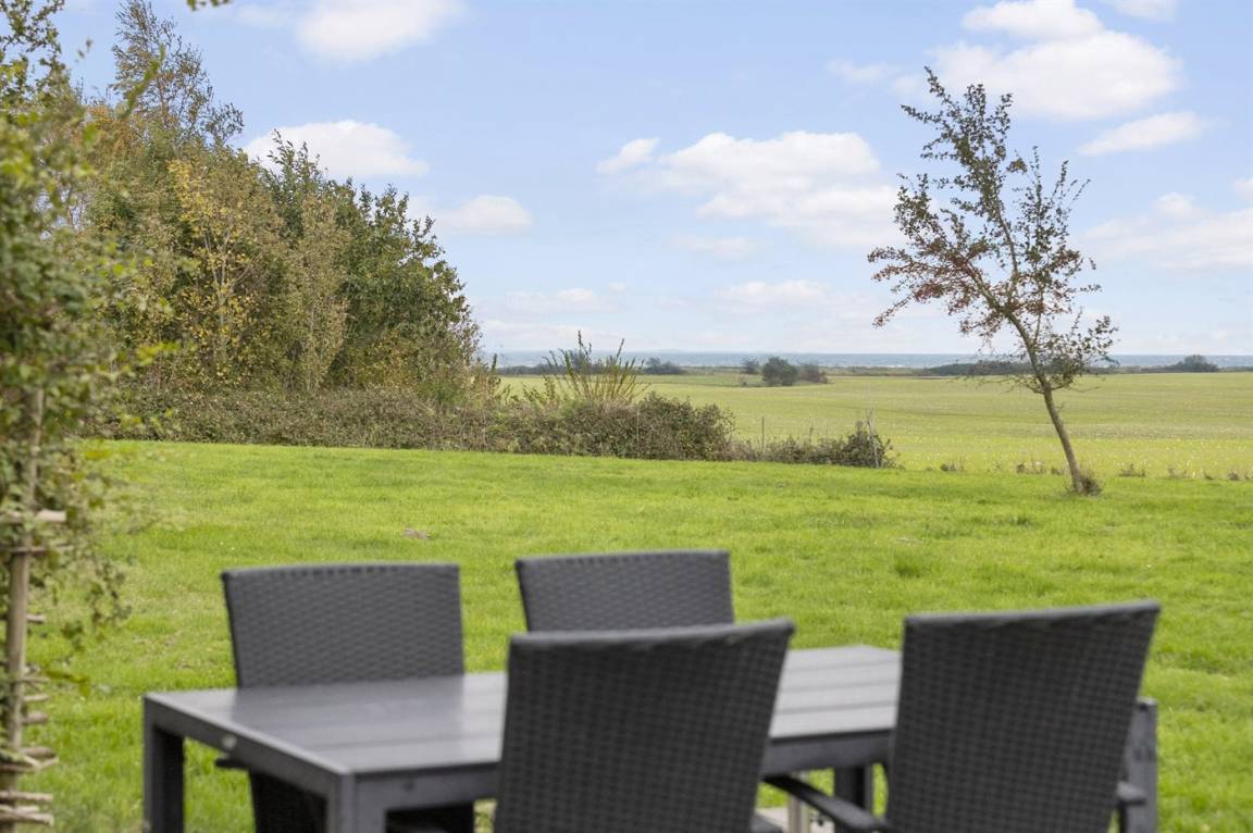 Gemütliches Ferienhaus in sehr ungestörter Lage mit Blick auf offene Felder und das Wasser.