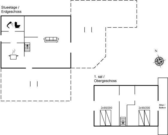 SchlafverhältnisseDie Schlafplätze verteilen sich auf 2 Schlafräume. 4 Schlafplätze in Einzelbetten. Ferner steht ein Kinderbett zur Verfügung.