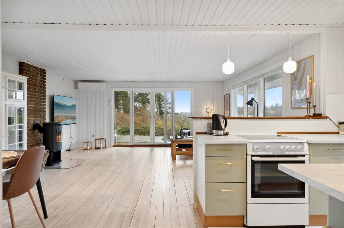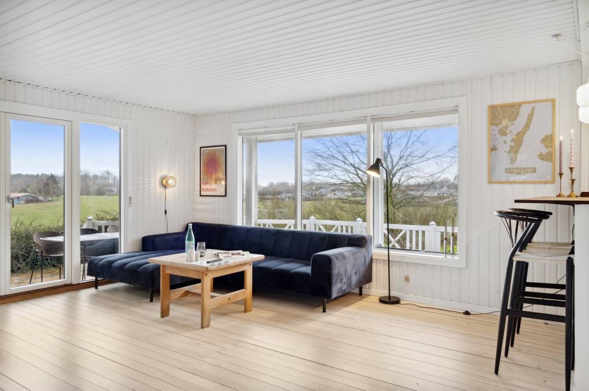 Schönes, erhöht gelegenes Ferienhaus mit Aussicht auf den Langelandsbelt von Haus und Terrasse. Das Haus ist hell und schön eingerichtet.