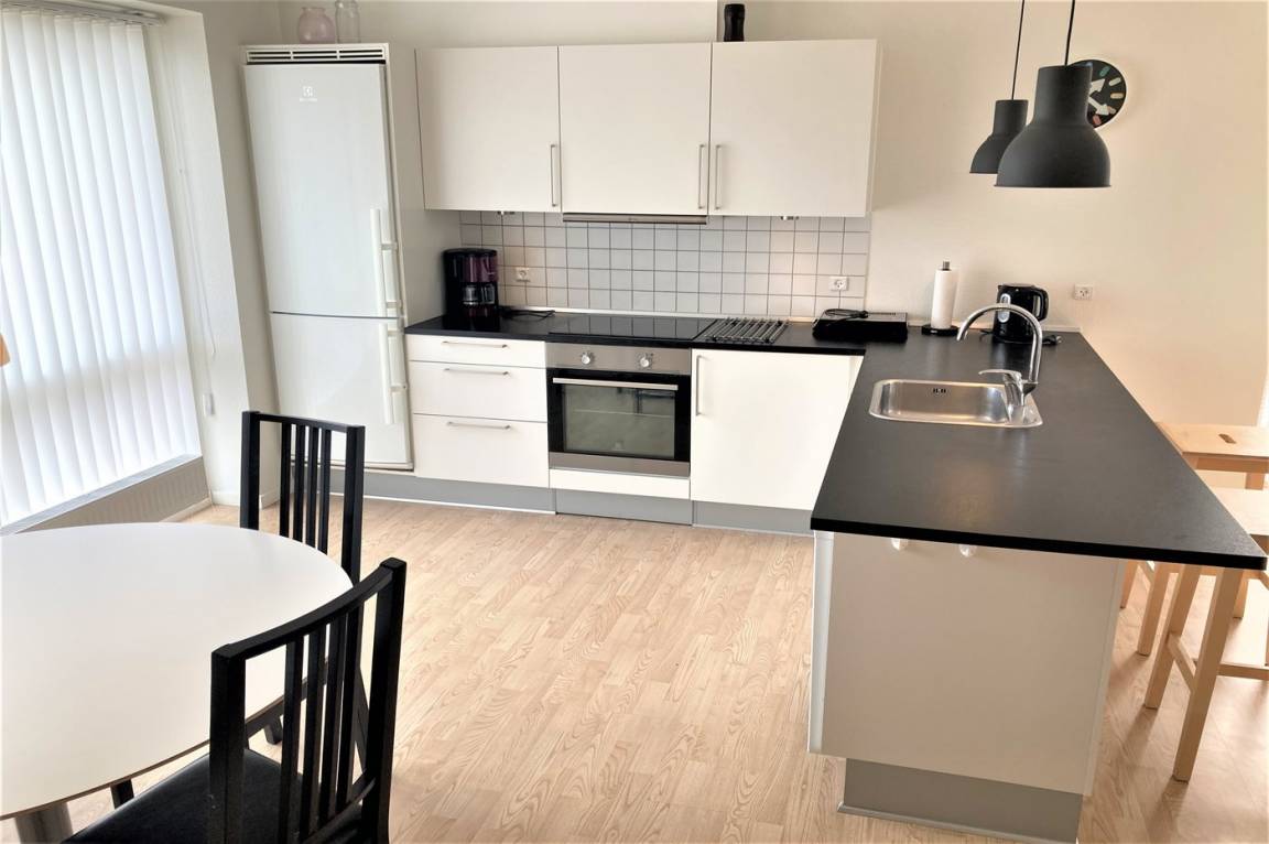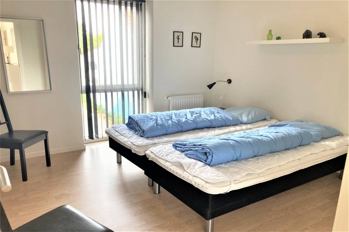 „The vacation at the holiday home: Vi kom til en fin lejlighed som er passende størrelse til 2 voksne, evt børn skal sove i stuen på sofa. Der var problemer ventilations anlæg og brusetermostat men dette blev hurtigt afhjulpet. Kaffemaskine var ikke rengjort ved ankomst, lamelgardiner i soveværelse kunne ikke justeres og lamelgardiner i køkken var en af lamellerne brækket af. Vi savnede oplysninger om internet kode og affaldscontainere, disse fandt vi ved lidt søgning. Desværre var der meget varmt i lejligheden, hvilket betød at vi måtte sove med vinduer åbne hvilket igen betød meget larm fra diverse knallerte biler og lastbiler som kom med varer til Superbrugs, Aldi og Netto fra kl. 6.00 om morgenen, fin stor terrasse til lejligheden“