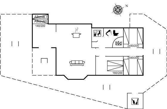 SchlafverhältnisseDie Schlafplätze verteilen sich auf 3 Schlafräume. 2 Schlafplätze in einem Doppelbett. 4 Schlafplätze in Einzelbetten.2 Schlafplätze im Alkoven. Ferner steht ein Kinderbett zur Verfügung.