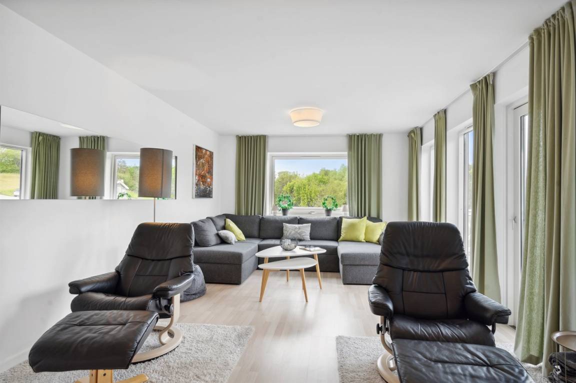 Herrliches, großes Haus in schöner Lage. Von der Südterrasse hat man Ausblick auf die umliegende Natur. Das Haus liegt auf einem großen Grundstück, auf dem es unter anderem einen Spielturm mit Schaukeln gibt.