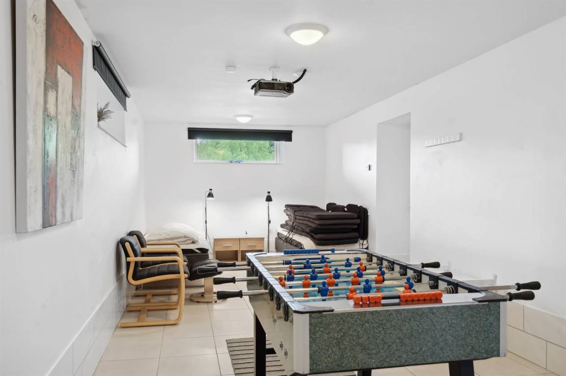 Im Keller mit eigenem Eingang befindet sich ein Schlafzimmer mit eigener Toilette. Hier kann man außerdem Tischfußball spielen.