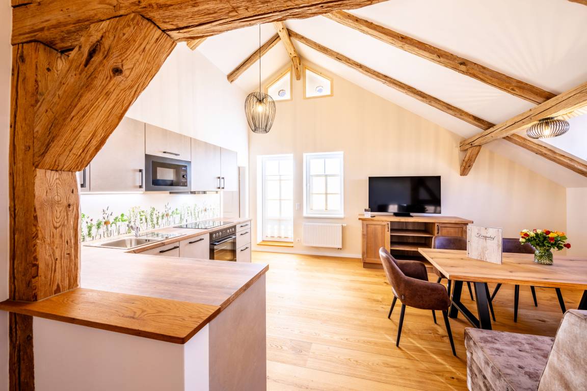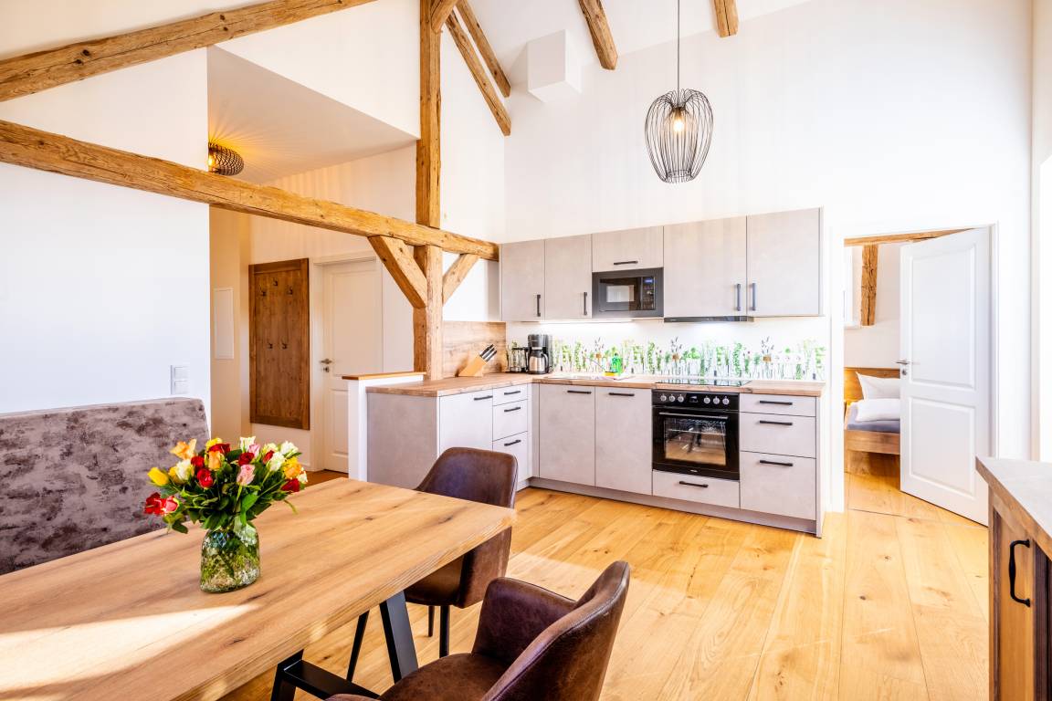Der Ferienhof ist ein aus dem 19. Jh. stammender Vierseitenhof mit langer Geschichte. Die Ferienwohnung 22 bietet Wohn- und 2 Schlafzimmer für 2 bis 25Personen mit Küchenzeile, Bad und Balkon.