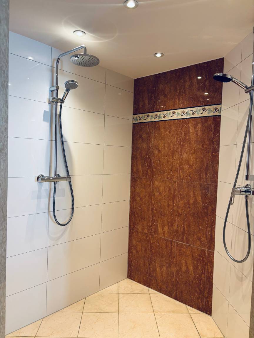 In unserer großzügigen Ferienwohnung erwartet Sie eine exquisite Ausstattung mit einer offenen Küche, einem Boxspringbett, einem sehr großzügigen Badezimmer (mit Badewanne, Bidet, zwei Waschbecken und einer begehbaren Dusche) und einem geräumigen Innenbalkon.