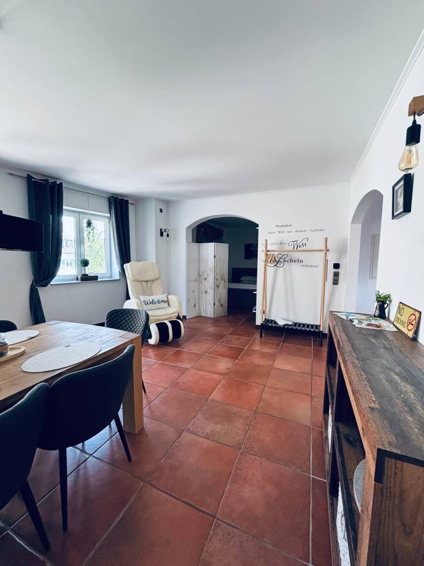 In unserer großzügigen Ferienwohnung erwartet Sie eine exquisite Ausstattung mit einer offenen Küche, einem Boxspringbett, einem Relax/Massage-Sessel, einem großzügigen Badezimmer plus extra Gäste-WC und einem geräumigen Innenbalkon.