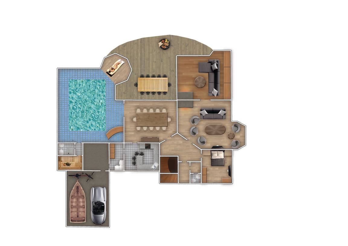 Genießen Sie die großzügigen 4000 Quadratmeter des Grundstücks, fünf stilvoll eingerichtete Schlafzimmer, vier Badezimmer und ein Gäste-WC. Ein Holzkohlegrill sowie ein Ofyr-Grill auf der Terrasse laden zu geselligen Abenden im Freien ein. Erleben Sie unvergessliche Momente in diesem exquisiten Rückzugsort!