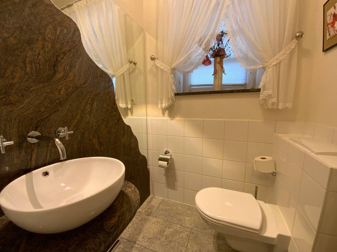 Unsere Villa verfügt über fünf stilvoll eingerichtete Schlafzimmer, darunter eins im Erdgeschoss und zwei mit einer großzügigen Loggia. Vier Bäder und ein Gäste-WC bieten höchsten Komfort. Auf der weitläufigen Terrasse mit Gartenmöbeln können Sie die frische Luft genießen.