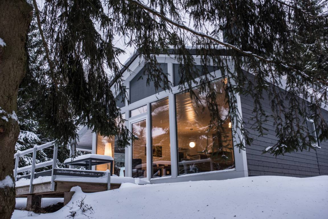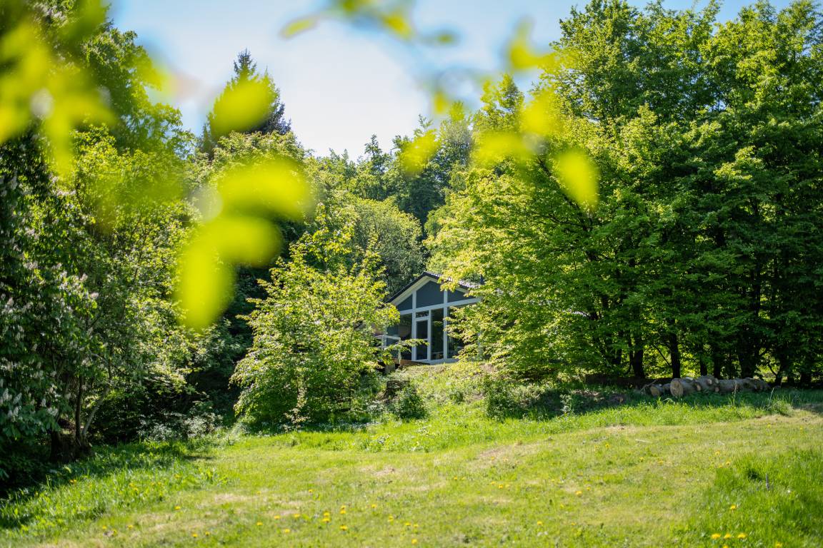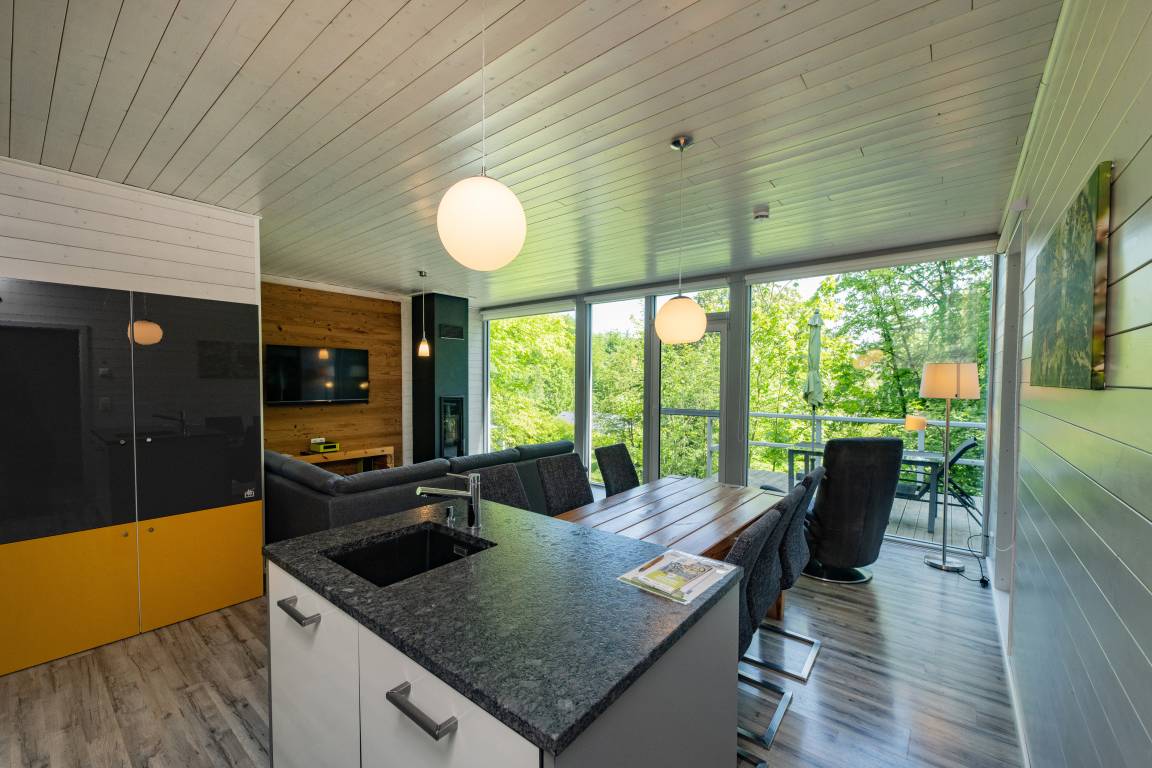 Das Ferienhaus mit einem lichtdurchluteten offenen Wohn- und Küchenbereich, zwei Schlafzimmern und einem Wellness-Bad mit Sauna bietet Ihnen auf 70 Quadratmetern ausreichend Platz für 4 Personen. Die 7 Meter breite Glasfront lässt die Natur beim Essen oder Relaxen teilhaben. In der kalten Jahreszeit vollendet das knisternde Kaminfeuer das Urlaubsfeeling.
