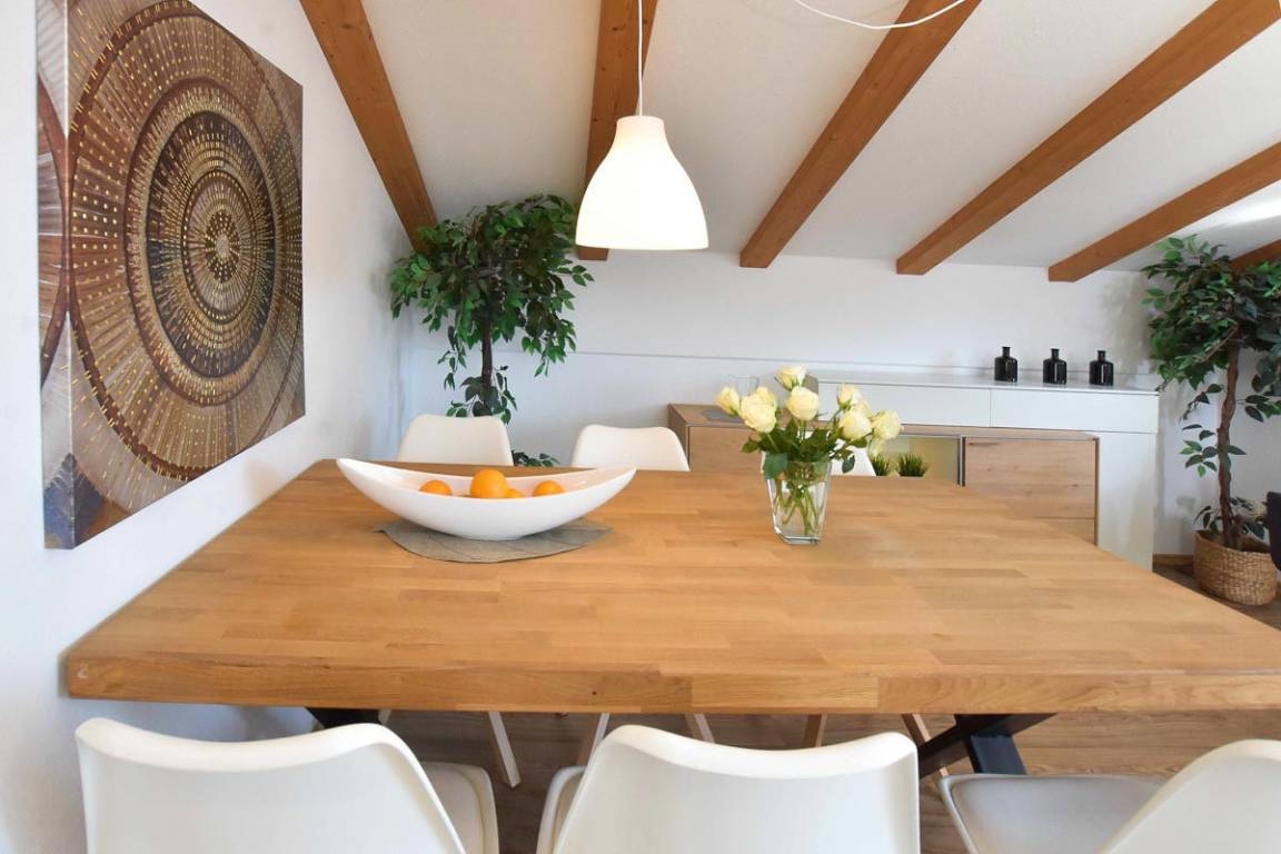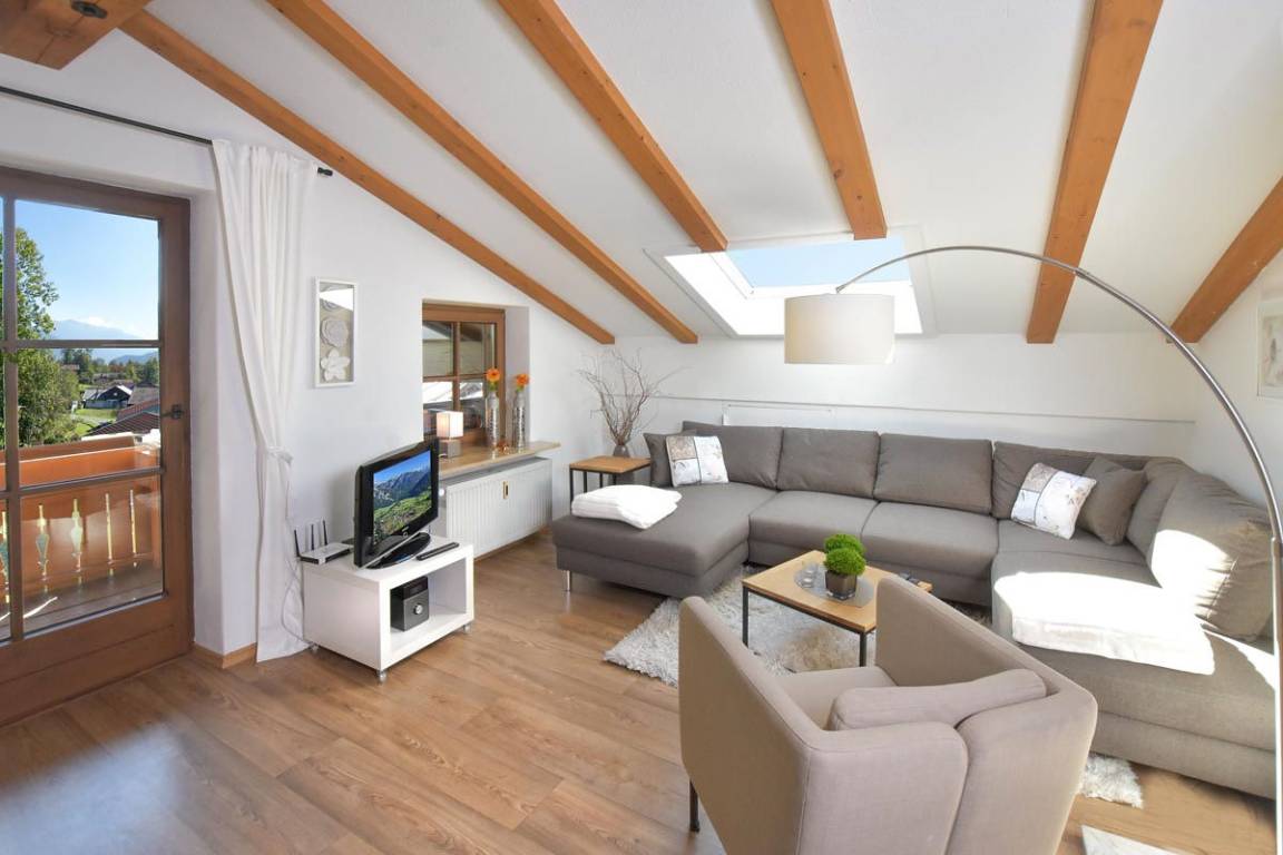 Großzügige und helle 3-Zimmer-Ferienwohnung (ca. 80 m²) im 2. Obergeschoss für bis zu 4 Personen. Ruhige Lage am Sonnenhang mit herrlichem Blick auf die Berge und Südbalkon.