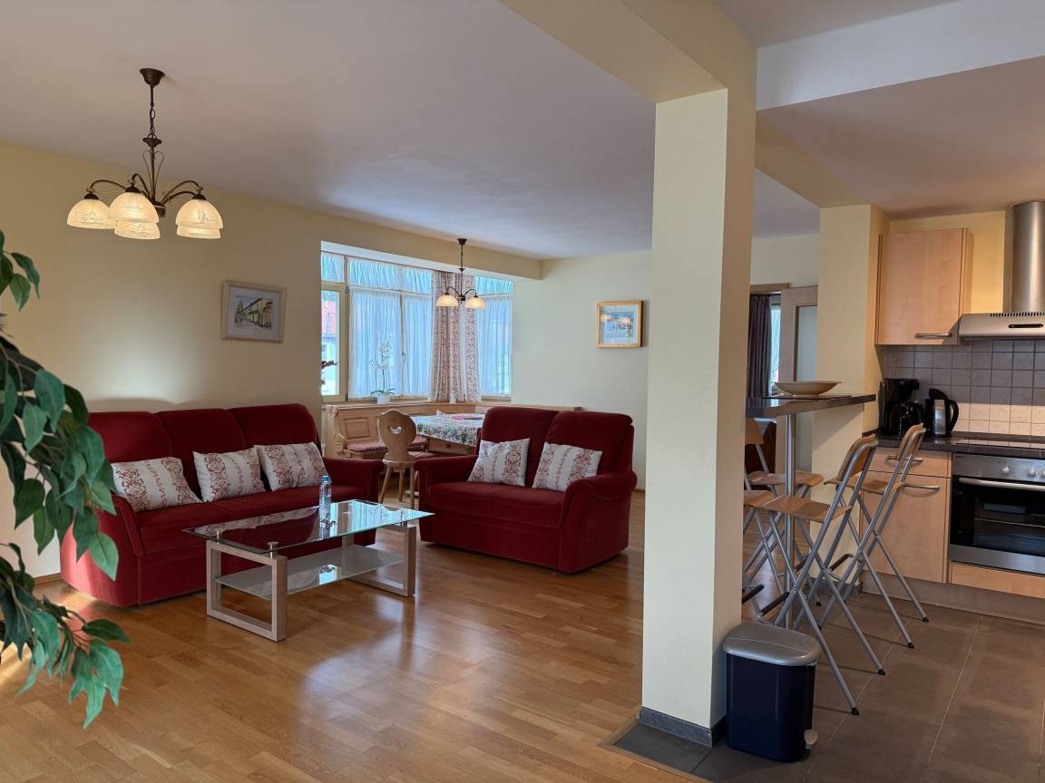 Großzügige 90 m² Ferienwohnung für bis zu 6 Personen mit Balkon & Bergblick. 2 Schlafzimmer, 2 Bäder, Wohnbereich mit Schlafsofas, moderne Küche & WLAN. Inklusive Tiefgarage und Fahrradraum. Ruhige Lage – ideal für Familien & Gruppen.