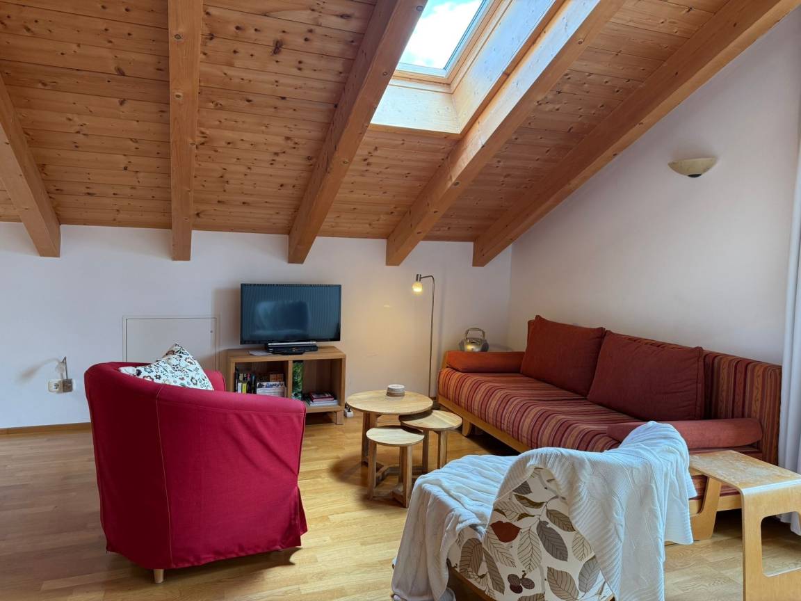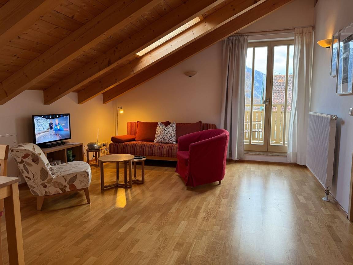 Moderne 70 m² Dachgeschoss-Ferienwohnung für 2–3 Personen in ruhiger Lage. Mit Südbalkon & Bergblick, WLAN, Küche, Parkplatz (Garage) und Fahrradraum. Schlafzimmer, Schlafsofa, Bad mit Dusche/WC. Ideal für Aktivurlauber und Erholung in den Alpen.