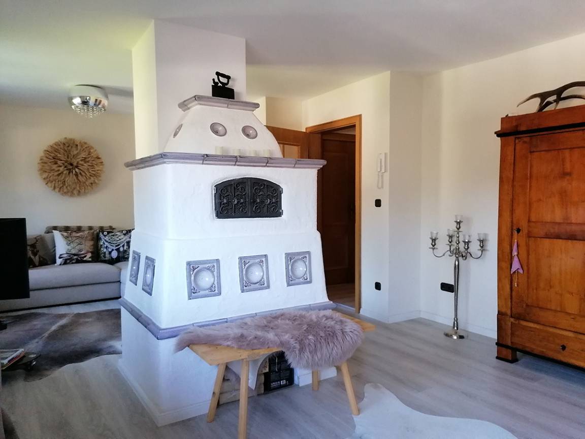 Gemütliches Wohnzimmer mit Balkon, Kachelofen, TV