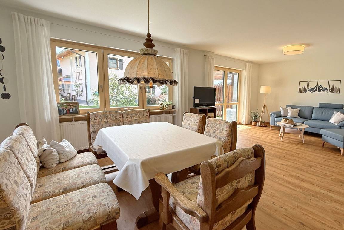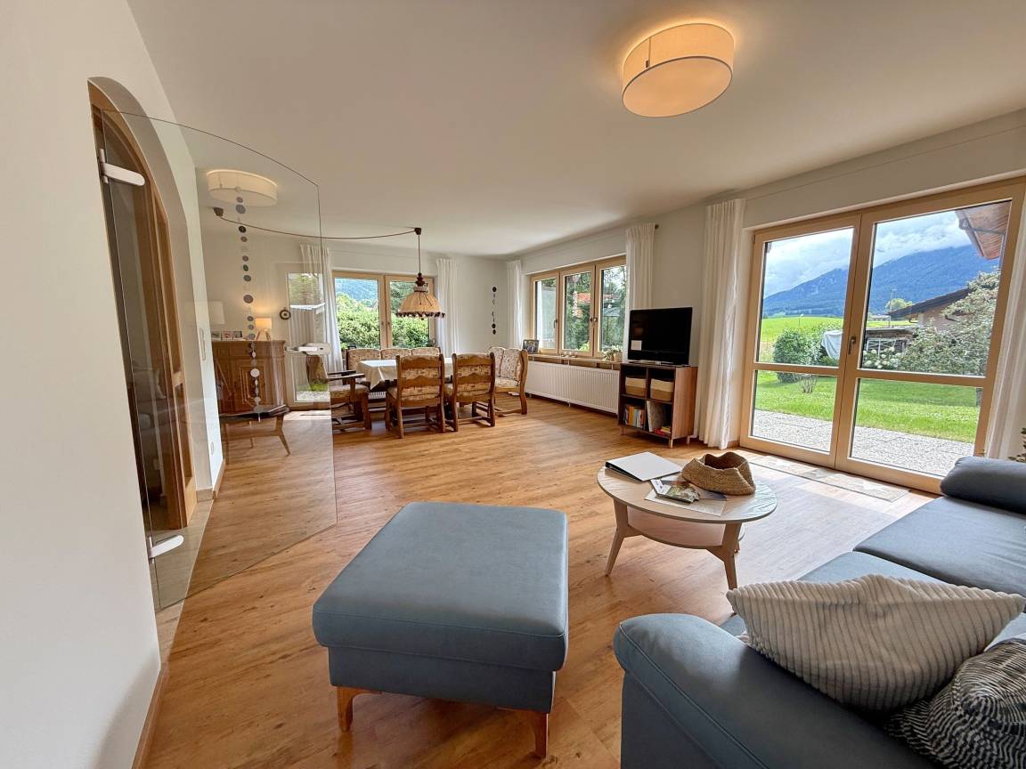 Ferienwohnung Zuhause31 in Ruhpolding: Neu renovierte 120 m² Unterkunft für bis zu 6 Personen mit großem Garten, Terrasse, Balkon und Chiemgau Karte inklusive. Ruhige, zentrale Lage nahe Skilift und Wanderwegen – ideal für Familienurlaub und Aktivurlaub in den Alpen.