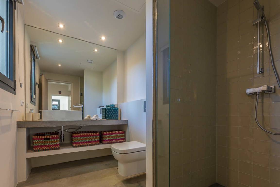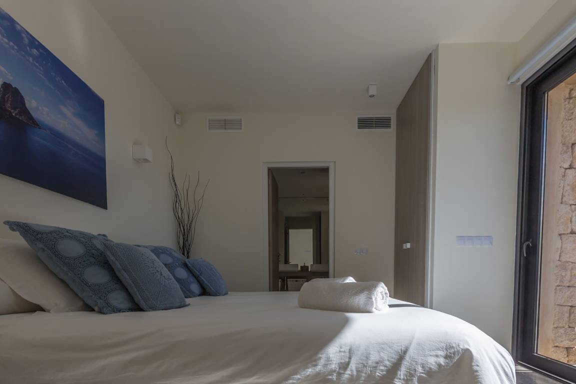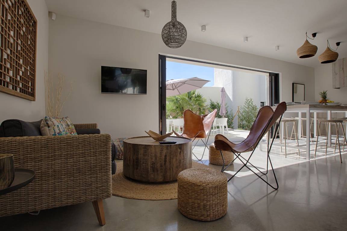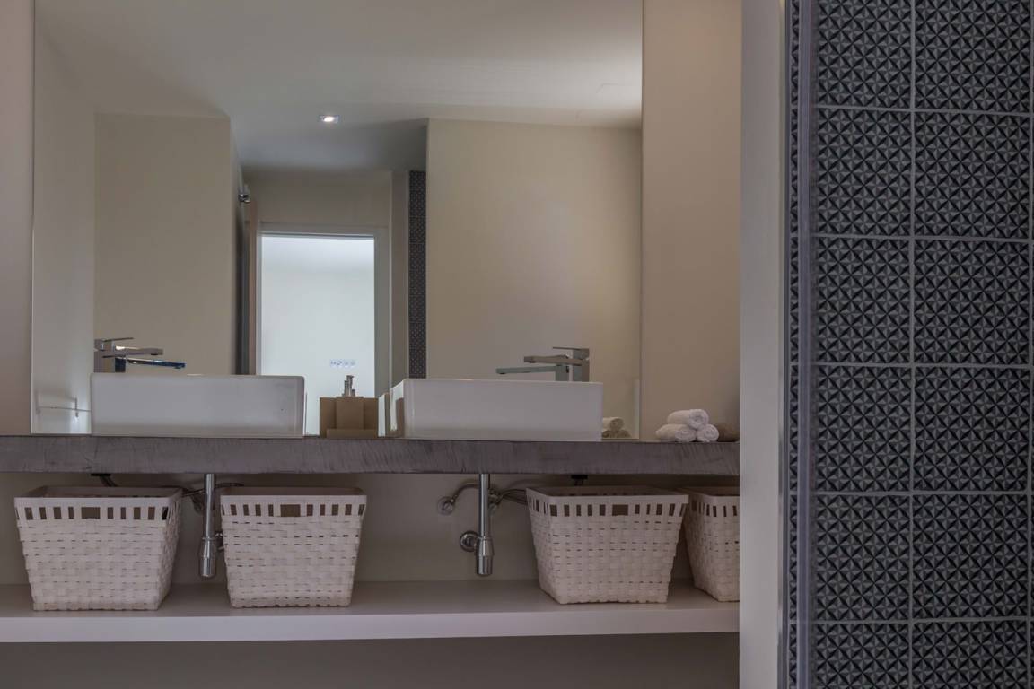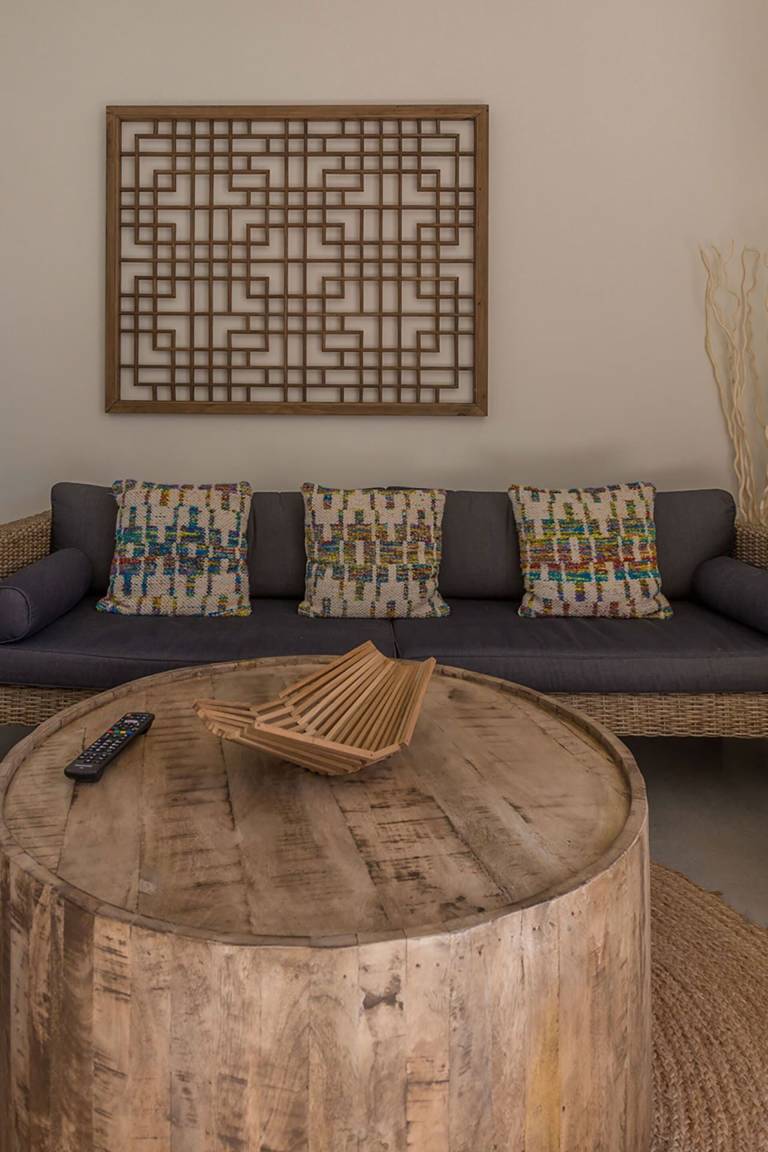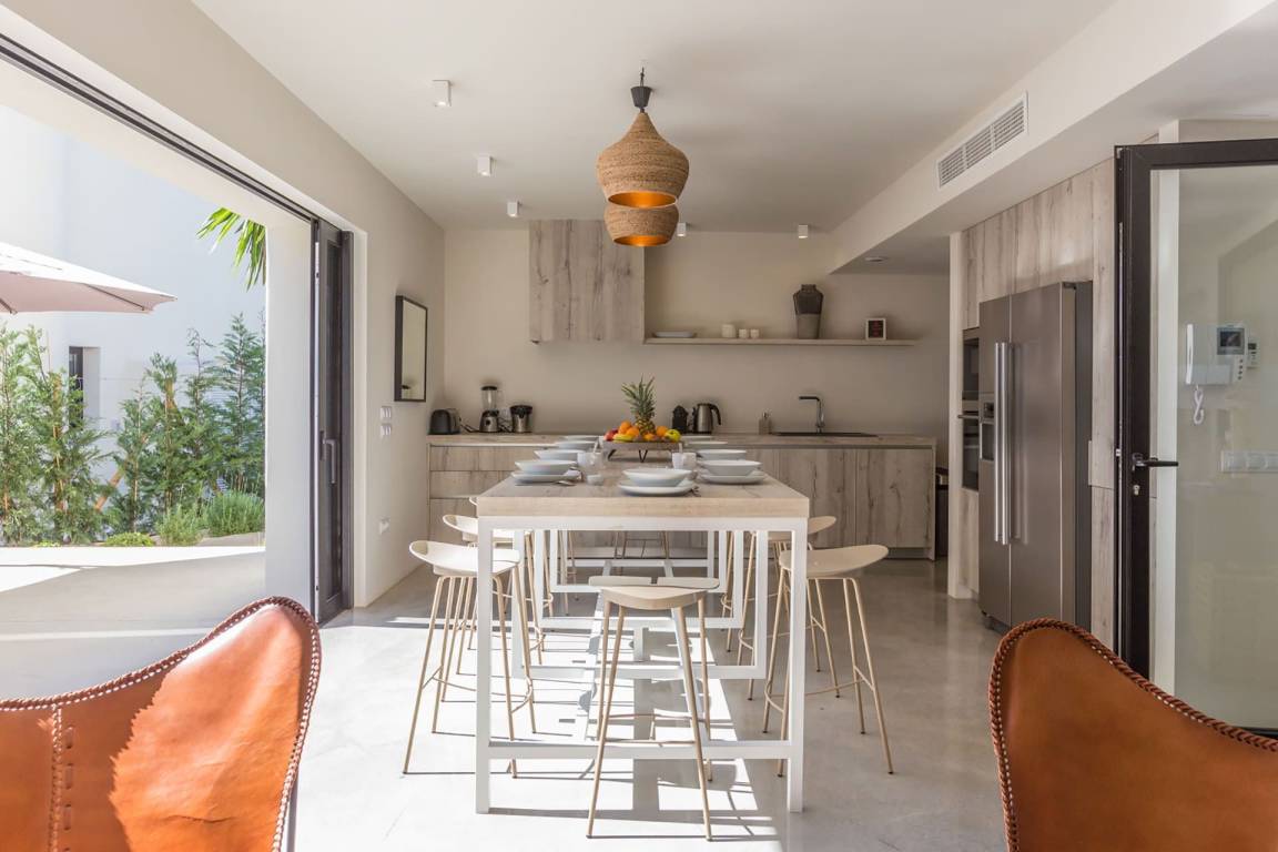 Die Villa Kiribati umfasst 5 Schlafzimmer und 5 Bäder und bietet Platz für bis zu 10 Gäste auf mehreren Geschossen. Die Schlafzimmer sind großzügig geschnitten und elegant möbliert. Jedes Bad ist hochwertig ausgestattet. Die Innenräume öffnen sich zu den Außenbereichen und ermöglichen direkten Zugang zum Meer sowie zu einem privaten Pool.