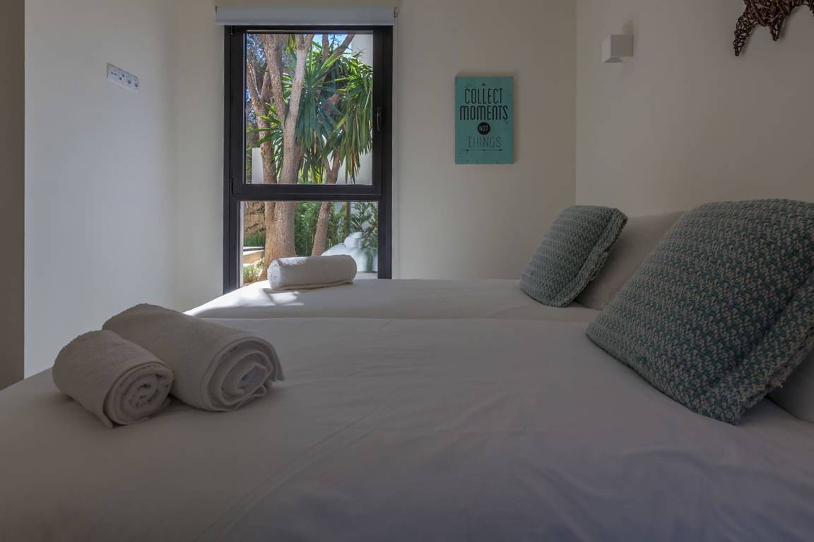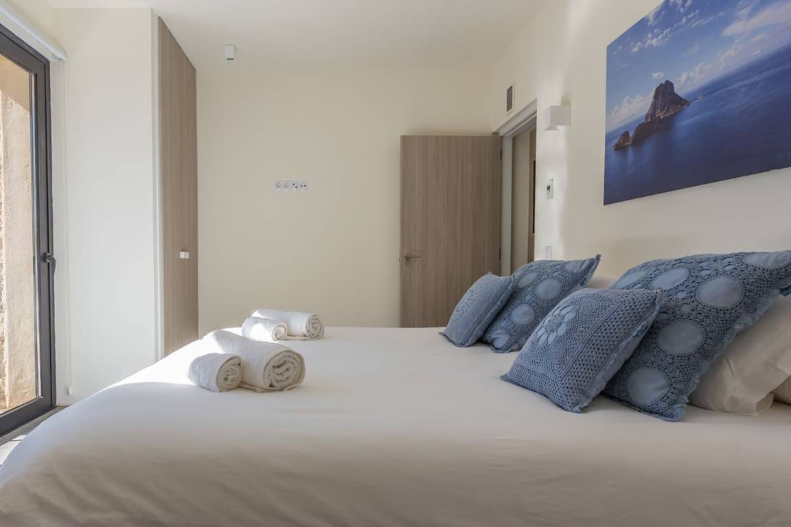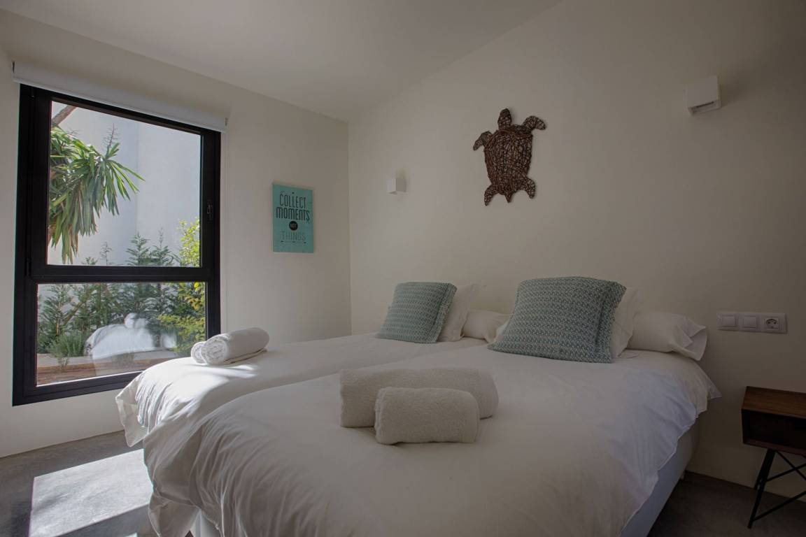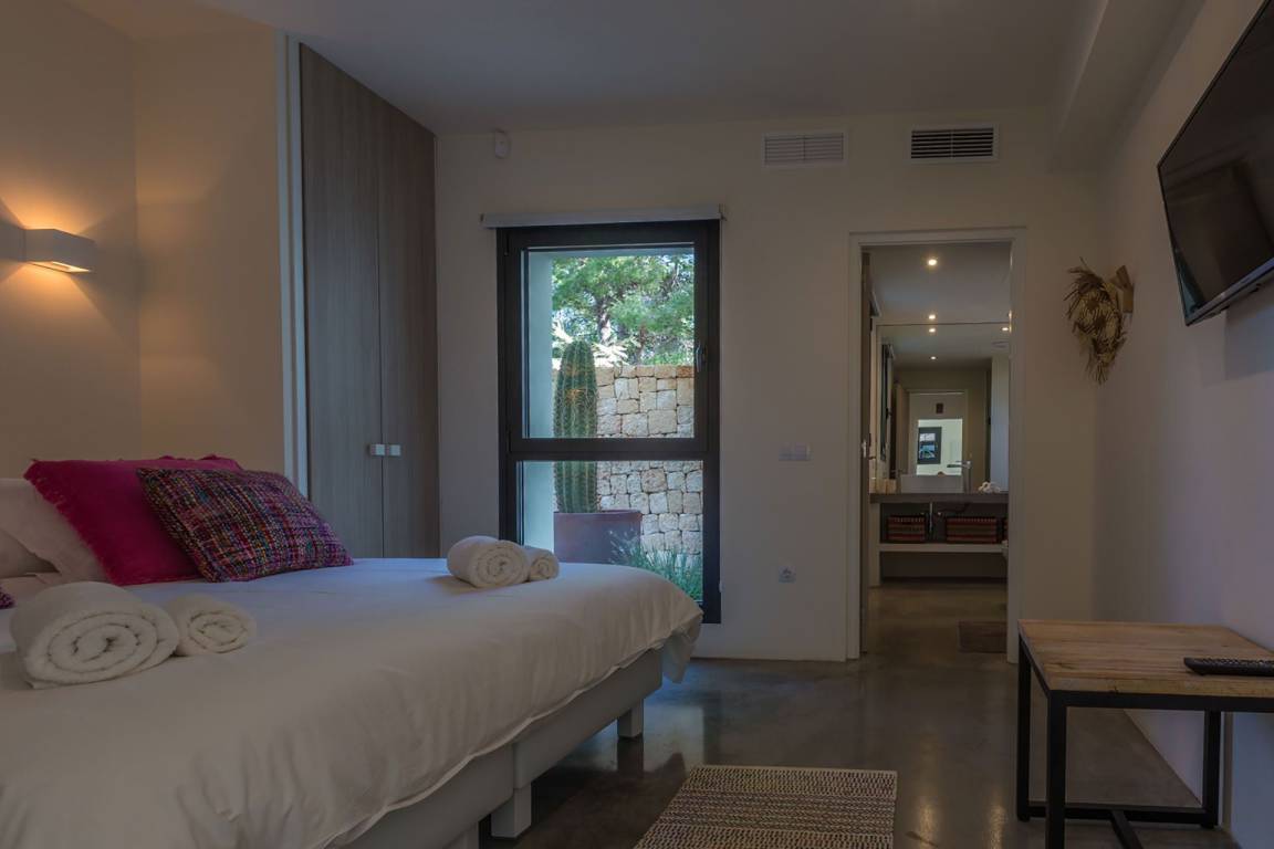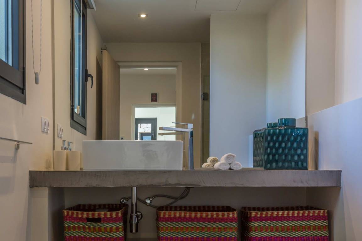 Die Villa Kiribati umfasst 5 Schlafzimmer und 5 Bäder und bietet Platz für bis zu 10 Gäste auf mehreren Geschossen. Die Schlafzimmer sind großzügig geschnitten und elegant möbliert. Jedes Bad ist hochwertig ausgestattet. Die Innenräume öffnen sich zu den Außenbereichen und ermöglichen direkten Zugang zum Meer sowie zu einem privaten Pool.