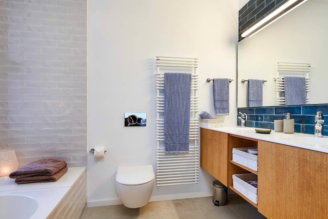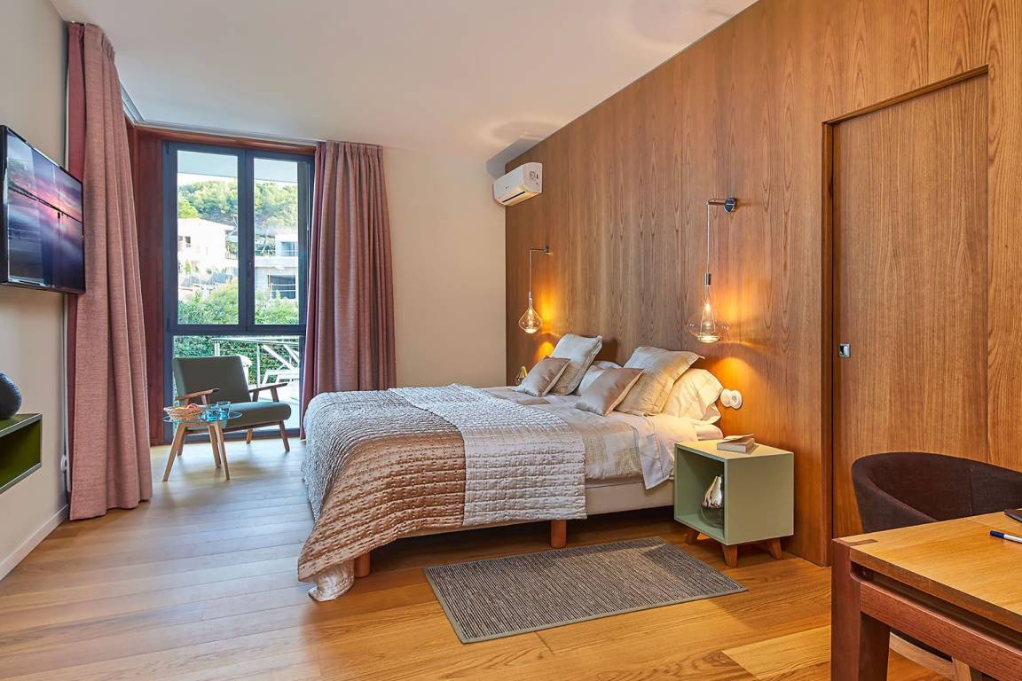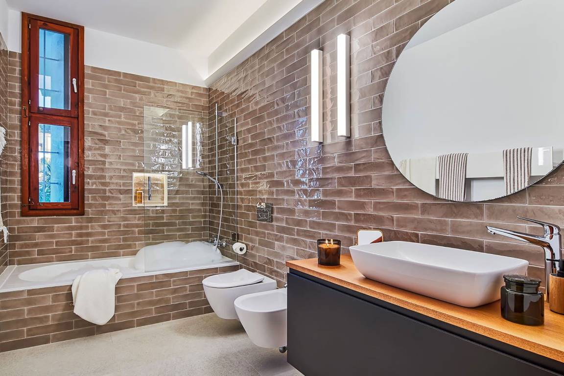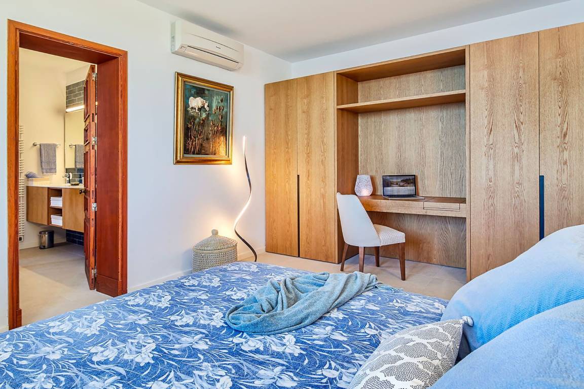 Das erste Obergeschoss beherbergt 2 weitere Schlafzimmer mit direktem Zugang zur Terrasse. Jedes Zimmer ist mit einem Doppelbett, Ankleideraum, eigenem Bürobereich, Meerblick oder Gartenblick und Klimaanlage ausgestattet. Die en-suite Badezimmer sind mit begehbarer Dusche oder Badewanne ausgestattet. Die Villa verfügt insgesamt über 5 Badezimmer.