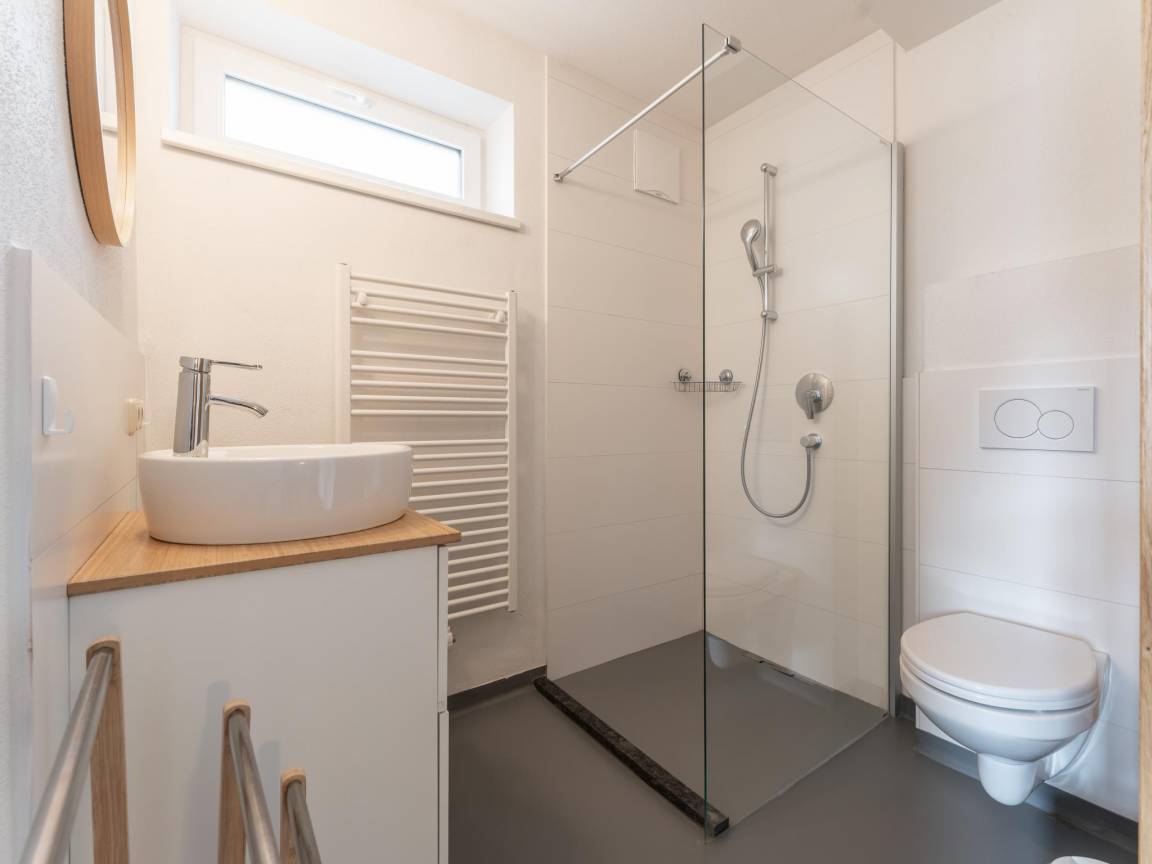 „Türsicherung ging oft nicht und war lavede. In 6er Zimmer im Bad war der Türgriff vom unterschrank des Schieber locker, die Türklinge im Bad viel ständig ab, Handtücher rochen nach Rauch, es fehlte ein großer Spiegel um sich im gesamten betrachten zu können. Die eine Ablage für Schuhe für viele Menschen ungenögend. Einrichtung war sehr schön und gemütlich.“