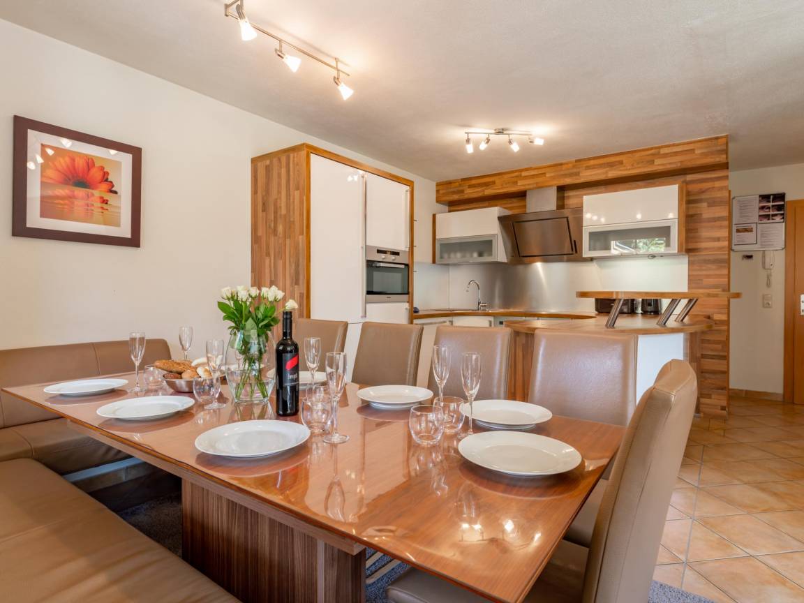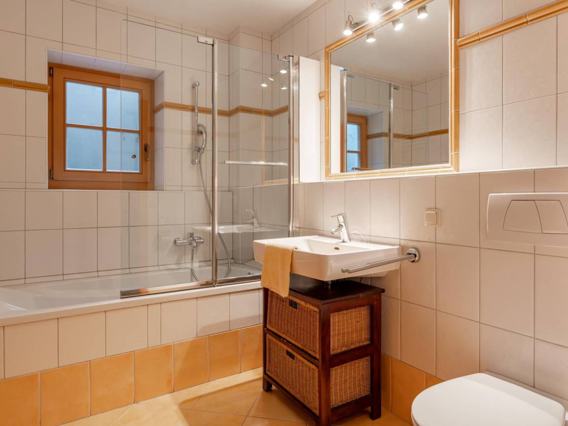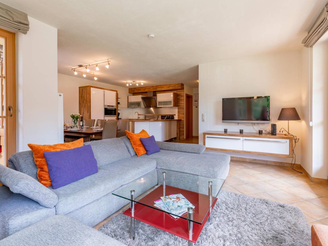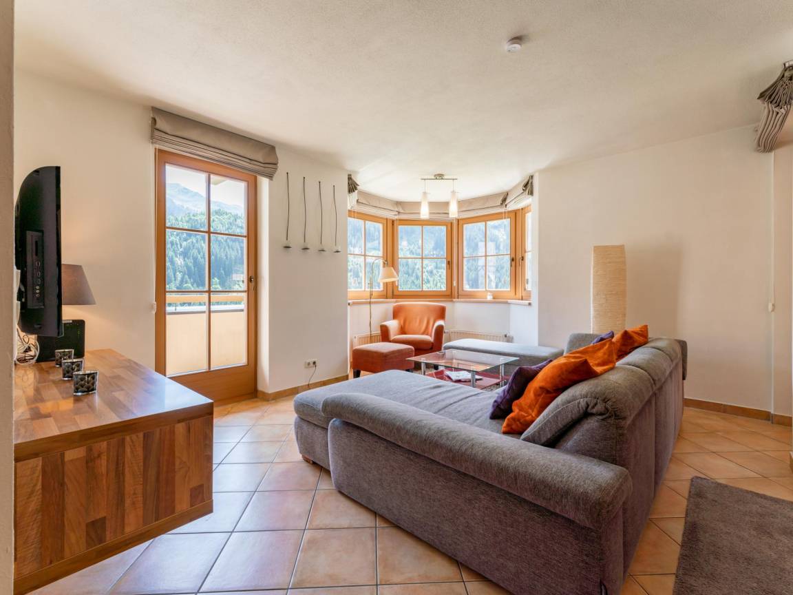 Hausbeschreibung : Von dieser geräumigen Wohnung mit reizvollem Erker haben Sie einen herrlichen Blick auf die umliegende Bergwelt. Das Haus ist über 2 Etagen verteilt und bietet Platz für 10 Personen, wobei das Schlafzimmer mit dem runden Bett ein Durchgangszimmer ist. Direkt vom Haus aus können Sie schöne Wanderungen unternehmen. Nach einem Tag in den Bergen können Sie sich in Ihrem Wellnessbereich mit Sauna entspannen. Genießen Sie die Sonne auf den beiden schönen Balkonen (Süden und Westen)
