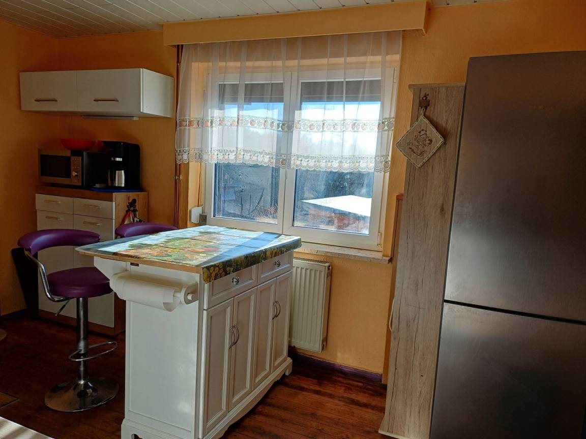 Im Erdgeschoß befindet sich ein rustikal eingerichtetes Esszimmer mit Leseecke; eine moderne, voll ausgestattete Küche, mit Kücheninsel, Kamin mit Backofen und viel mehr; Relax-Wintergarten mit unvergesslichem Panorama-Blick auf das Thüringer Meer und die Landschaft; WC.