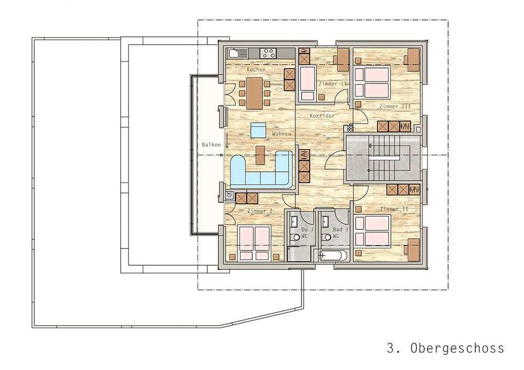 Nebenkosten: Endreinigung 140 SFr. Kurtaxe & Saastal-Card 10,50 SFr/Erw./Tag (Kinder 6-16 Jahre zahlen die Hälfte, Bezahlung vor Ort). Bettwäsche, Handtücher vorhanden. Zusätzliche Leistungen: Saunastrom im Mietpreis inklusive. 2 Pkw-Stellplätze im Preis inklusive. Kostenloser Internetzugang über W-Lan. Kinder: Babybett zusätzlich zur maximalen Personenzahl ohne Berechnung (Bestellung). Hochstuhl ohne Berechnung (Bestellung). Haustier nicht erlaubt.Räume & Aufteilung