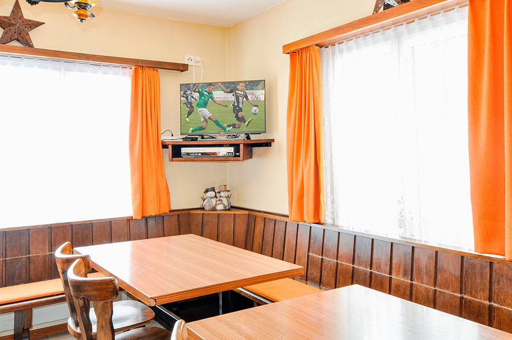 Haus: Gepflegtes Gruppenhaus im regionstypischen Stil mit 13 Zimmern. Überwiegend Doppelzimmer, alle mit Wb. Bei einer Belegung mit 24 Personen nur 2 Personen pro Zimmer. Internetzugang über W-Lan. Ölzentralheizung. Große Sonnenterrasse mit Sitzmöbeln (1. Etage). Garten mit Sitzmöbeln, Grillkamin. Tischtennis-Platte. 8 Pkw-Stellplätze vorhanden. Separate Wohnung des Vermieters in der obersten Etage. Die Eigentümer legen Wert auf Ruhe und Rücksichtnahme. Jugendgruppen (Junggesellenabschiede) werden nicht akzeptiert.
