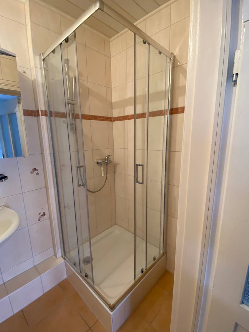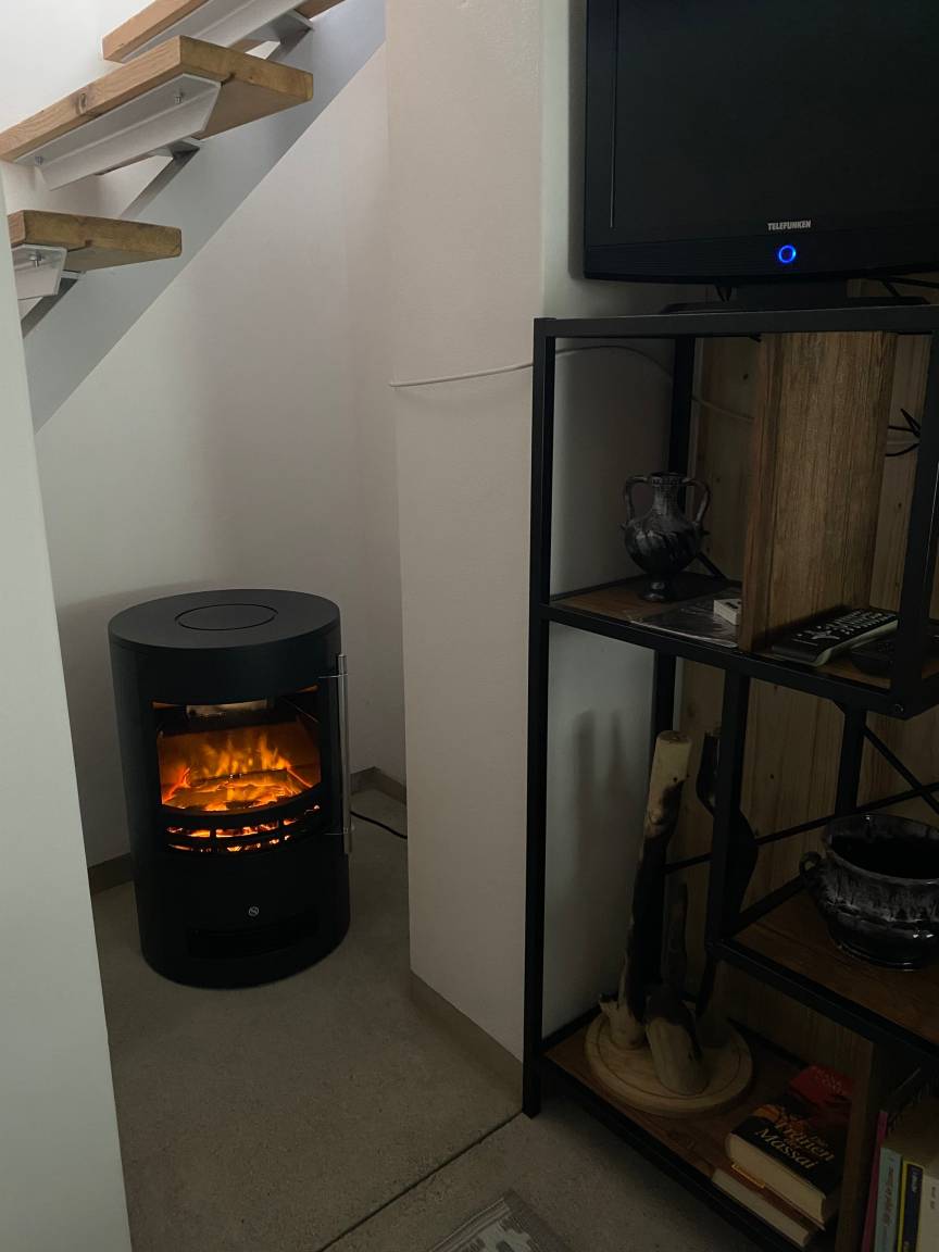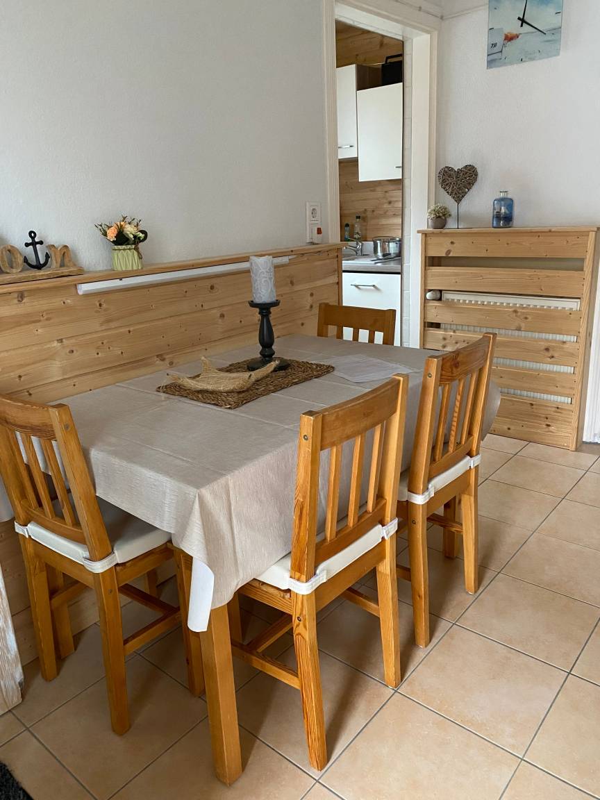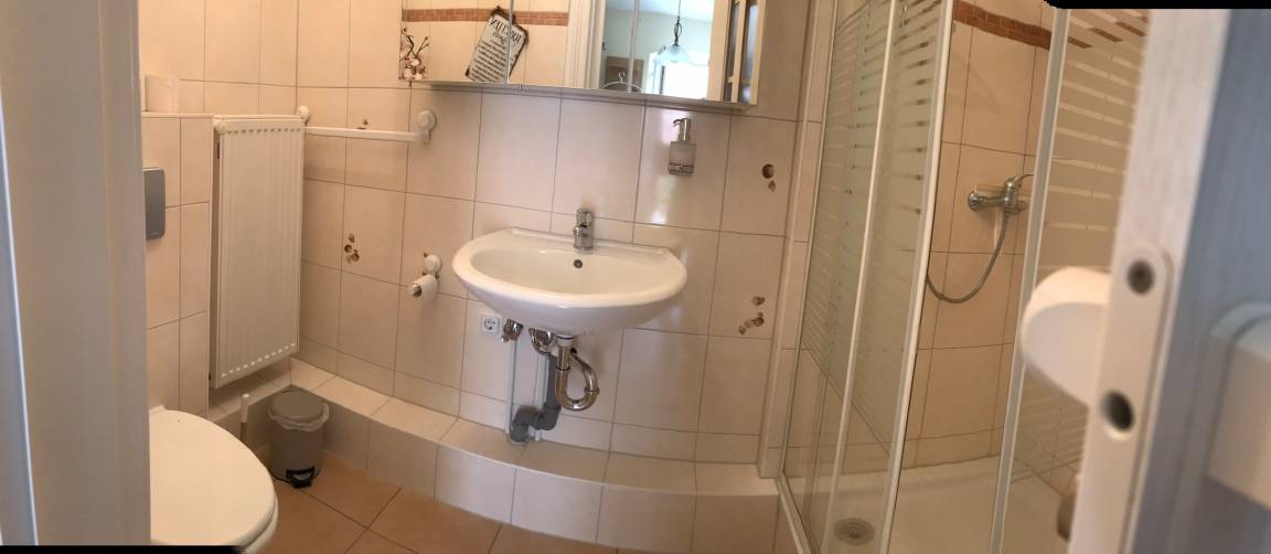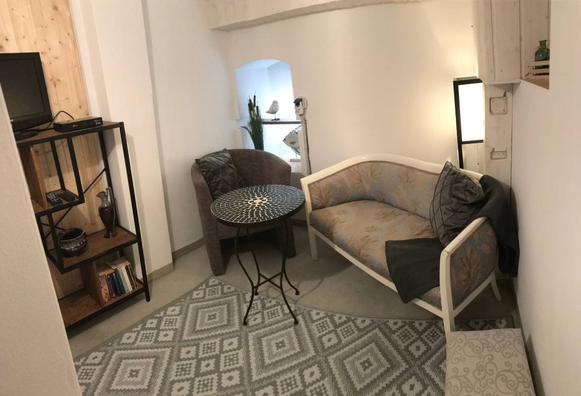 Unsere 2,5 Raum-Wohnung (EG) bietet Ihnen Platz für Ihr wohnen auf Zeit bei uns. Im Gewölbezimmer im Souterrain verbirgt sich ein gemütliches Wohnzimmer. Es verfügt über ausreichend Sitzmöglichkeiten mit Fachbild-SAT-TV, Radio und WLAN. Für die Gemütlichkeit sorgt hier ein elektrischer Kamin. Im Schlafzimmer steht für Ihren geruhsamen Schlaf ein Doppelbett mit hochwertigen elektrischen Lattenrosten (160x 200 Meter) bereit. Hier ist ebenfalls eine bequeme Couch die als Schlafgelegenheit umfunktioniert werden kann. Die Couch hat eine Liegefläche von 90 x 200Meter. Der Fußboden ist mit Holzdielen ausgestattet. Die voll ausgestattete Wohnküche hält alles bereit (Kühlschrank mit Gefrierfach, Herd mit 2 Platten Ceranfeld, Kombigerät mit Backofen, Mikrowelle und Dampfgarer, einen Geschirrspüler und natürlich eine Kaffeemaschine, Toaster und Wasserkocher. Sie ist somit hervorragend ausgestattet. Zum Essen setzen Sie sich an den Esstisch oder einfach auf die eigene Terrasse vor der Wohnung. Das Dusch-/Badezimmer ist modern eingerichtet.