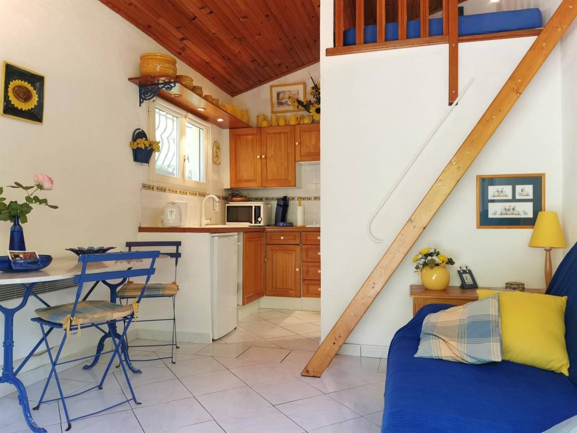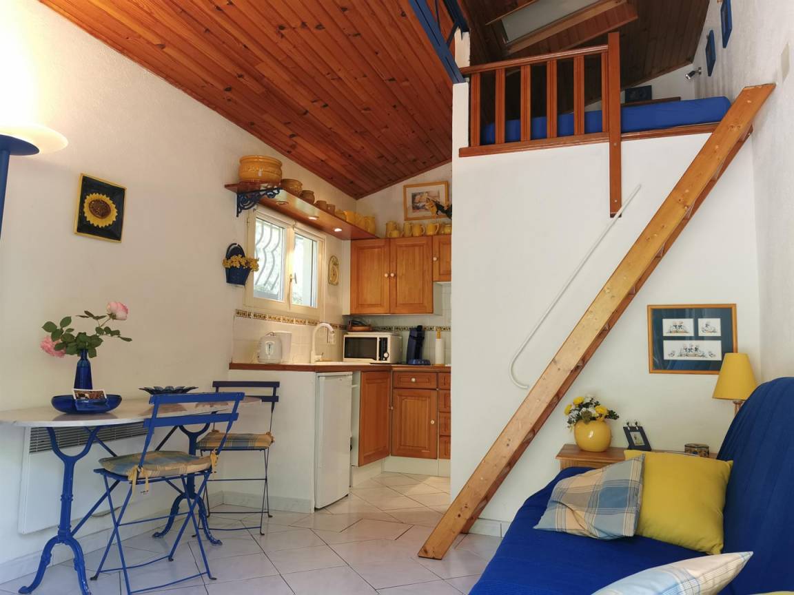 „Accueil et contact chaleureux. Jardin très beau. Le gîte etait trop petit et le lit au mezzanine n'etait pas une option pour nous. Heureusement il y avait aussi un canapé-lit.“