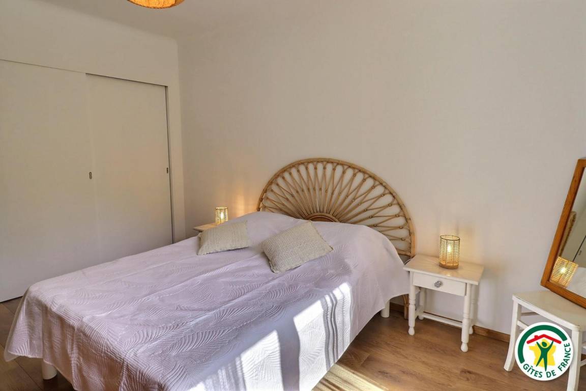 Im Erdgeschoss (5 Stufen): großer Wohnbereich, der die zum Esszimmer offene Küche und das Wohnzimmer mit Kamin und Zugang zur Terrasse kombiniert, 2 Schlafzimmer (140x190) (140x190), Duschraum, WC. Obergeschoss (Zugang über eine Treppe im japanischen Stil mit Handlauf): 2 Schlafzimmer im Dachgeschoss (140x190) (90x190). Draußen und nur für Sie: 15m² Südterrasse, halb überdacht und mit Markise, Garten, 1.000m² abgeschlossenes Grundstück, Parkplatz auf dem Grundstück mit Tor, 2 Schaukeln, Trampolin, Swimmingpool (3,5x6,5m, durchgehend 1,50m tief, gesichert durch eine Absperrung (schwarzes Netz mit transparenter Schleieroptik), Mai bis September). Moskitonetze an allen Fenstern. Bettwäsche und Handtücher werden nicht gestellt.