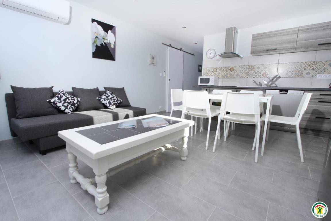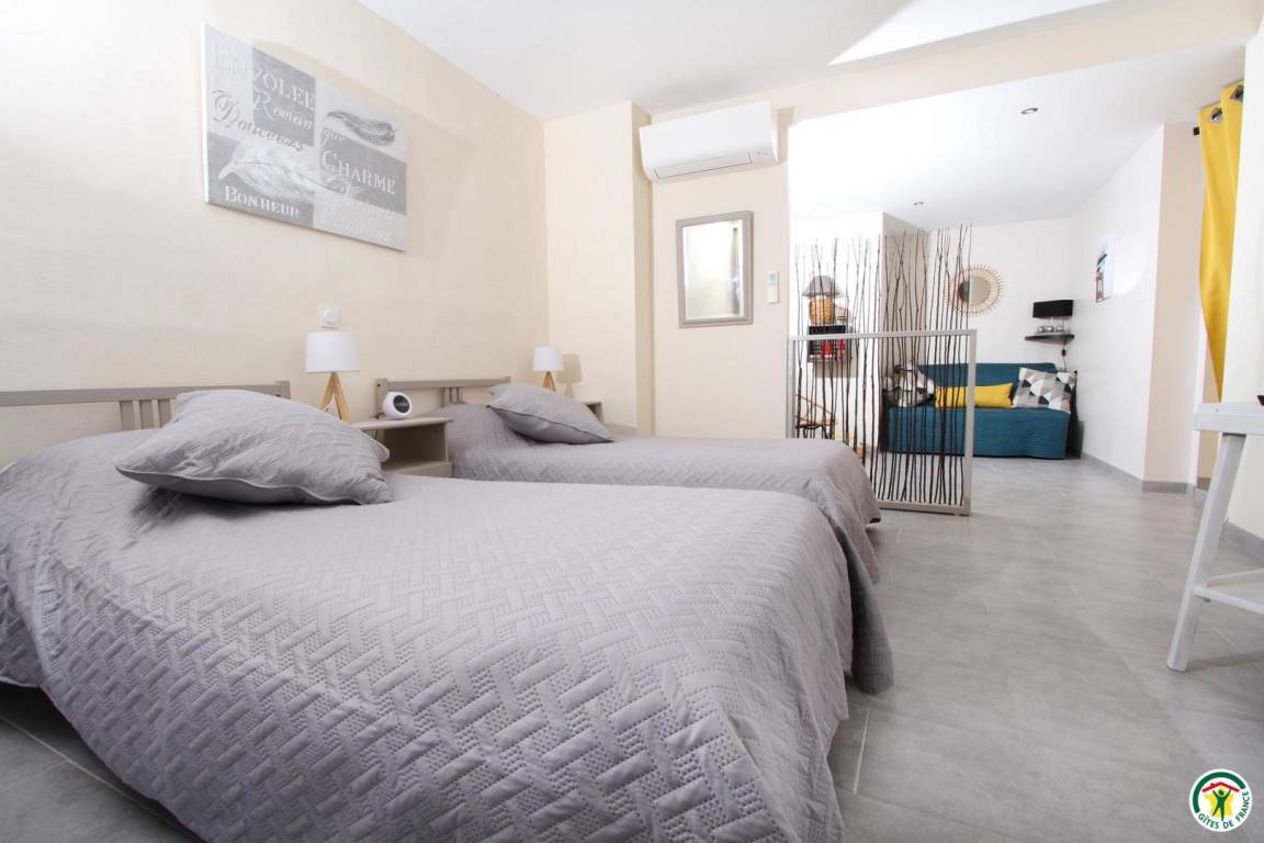 „Nous avons d'abord été bien accueillis par les propriétaires, qui habitent à l'étage supérieur. Tout en restant très discrets, ils étaient toujours à l'écoute et prompts à réagir en cas de souci. Le logement est spacieux, confortable, bien équipé. Bien que les appareils de climatisation étaient présents dans les pièces, nous n'en avons pas eu besoin, l'appartement étant assez frais de par sa construction. Il est bien situé, pas trop loin des commerces de proximité et des diverses activités touristiques.“