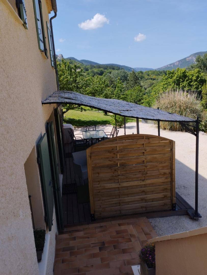 „Entrée dans les lieux facile. Extérieurs grands, variés, bien entretenus, fleuris, avec terrasse bien équipée pour en profiter. Belle vue sur la montagne d'en face. Bonne exposition au soleil. A l'intérieur, rien ne manque. Cuisine bien équipée. Le mobilier est confortable à l'exception des téléviseurs dont le format est petit par rapport à d'habitude, mais, comme dit le propriétaire, on ne vient pas ici que pour la télé. L'endroit est paisible, non loin de Nyons et des autres hameaux de la vallée. Sahune est un bourg avec qq restaurants et commerces intéressants. Bon séjour !“