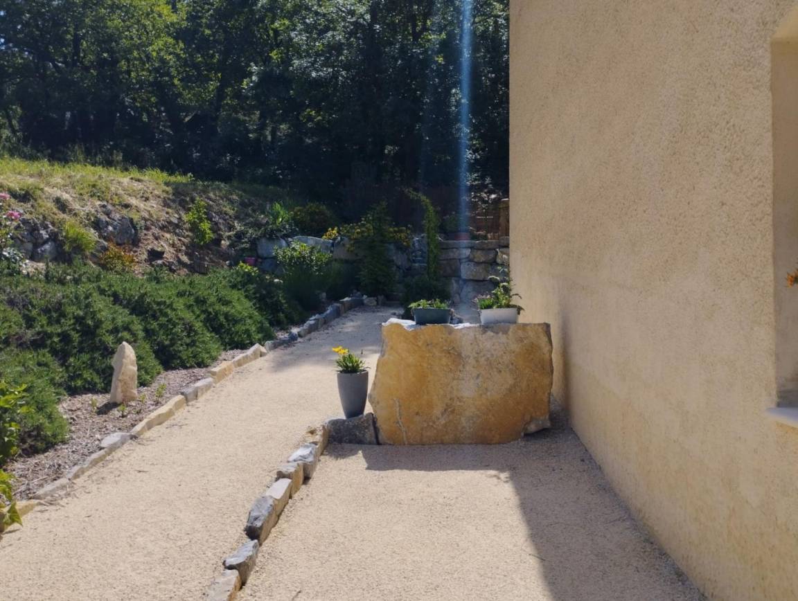 Die Ferienunterkunft "La Colombine" ist im Erdgeschoss unseres Wohnhauses eingerichtet und bietet einen schönen Ausblick auf die Felslandschaft. Ob auf der Durchreise oder für einen längeren Aufenthalt: Genießen Sie den modernen Komfort eines vollkommen neuen kleinen Zuhauses mit interessantem Leistungsangebot. Die Ferienunterkunft ist klimatisiert und verfügt über 2 Badezimmer (mit Dusche). Aufenthaltsraum mit Küche, die zum Wohnzimmer mit Sitzbereich hin offen ist, 1 Suite (30 m²) (2 Betten 90 x 200 cm, Bad mit Dusche, eigenes WC), 1 Zimmer (1 Bett 160 x 200 cm), Bad mit Dusche, WC. Ein Boule-Platz steht Ihnen zur Verfügung.
