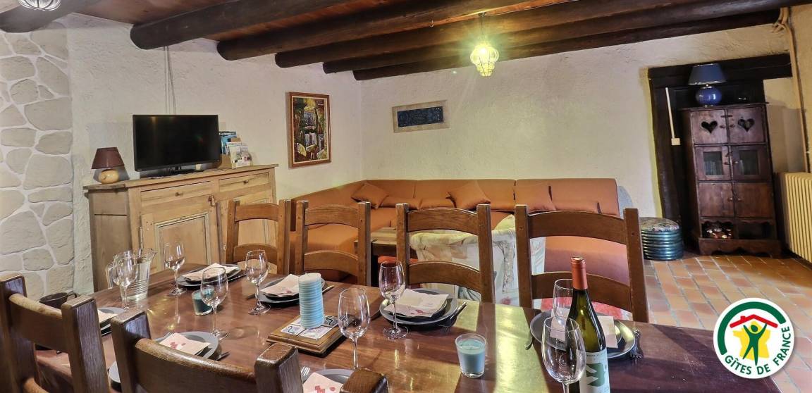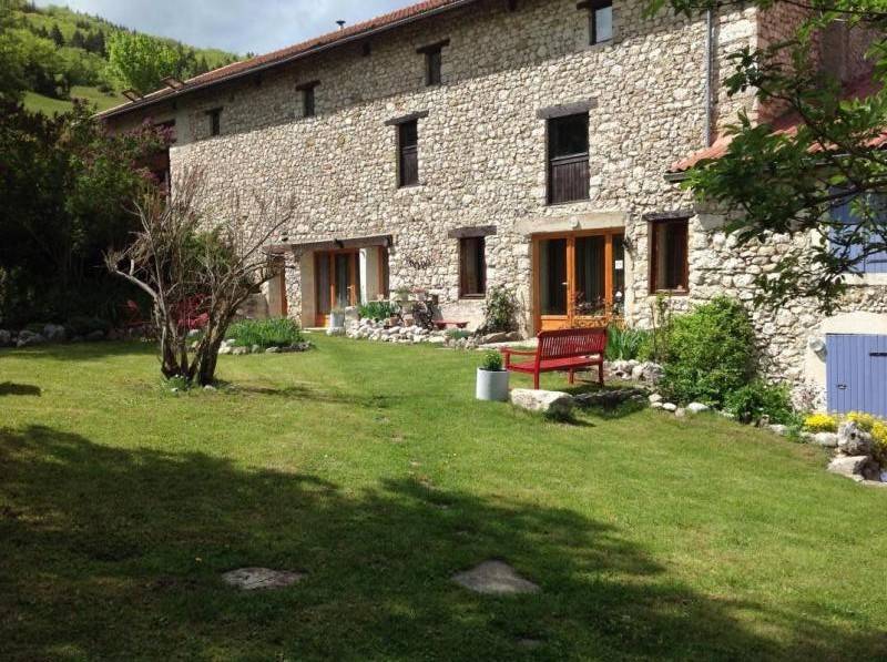 "Die Ferienunterkunft "Les Revoux" befindet sich in einem renovierten ehemaligen Bauernhof mit Charakter, inmitten von Wiesen und mit Aussicht auf die Berge, in einer außergewöhnlichen Umgebung. Sie liegt abgelegen, oberhalb einer kleinen Straße über dem schönen Tal des Flüsschens Vernaison. Ideal für Gäste, die Ruhe und weite Landschaften lieben."