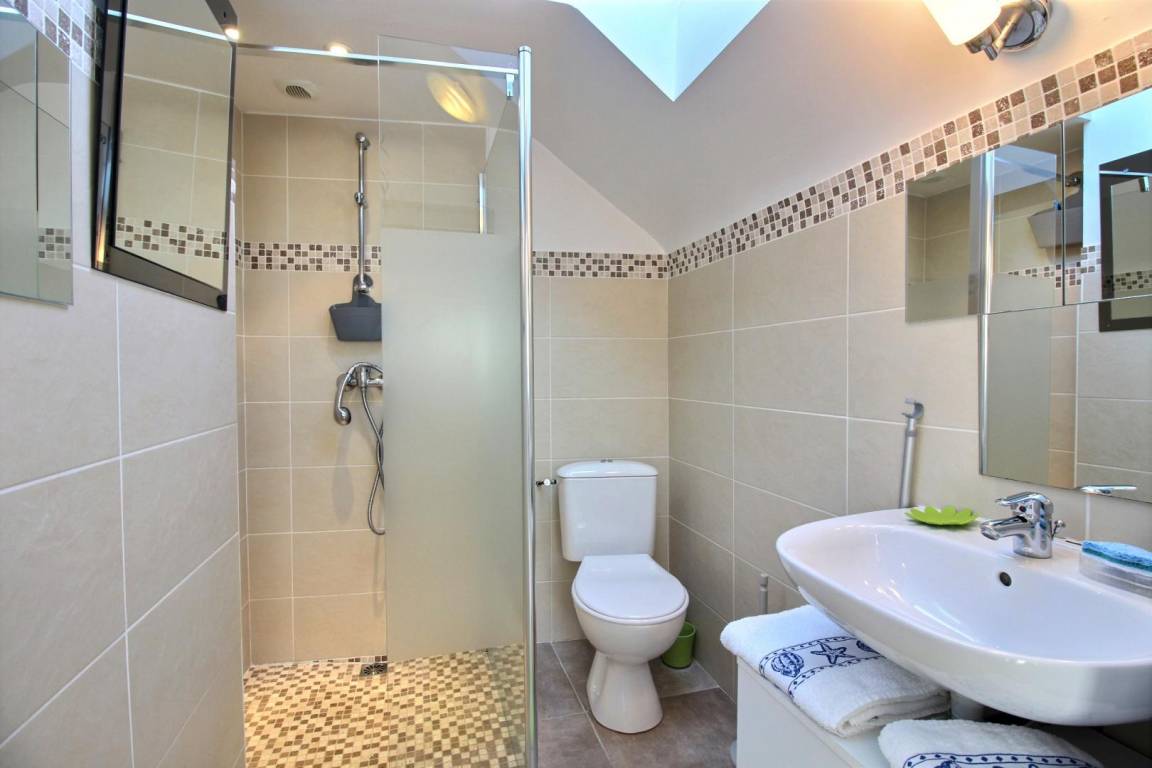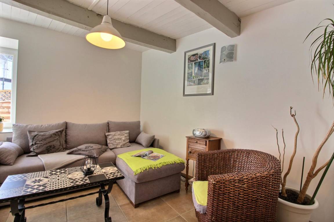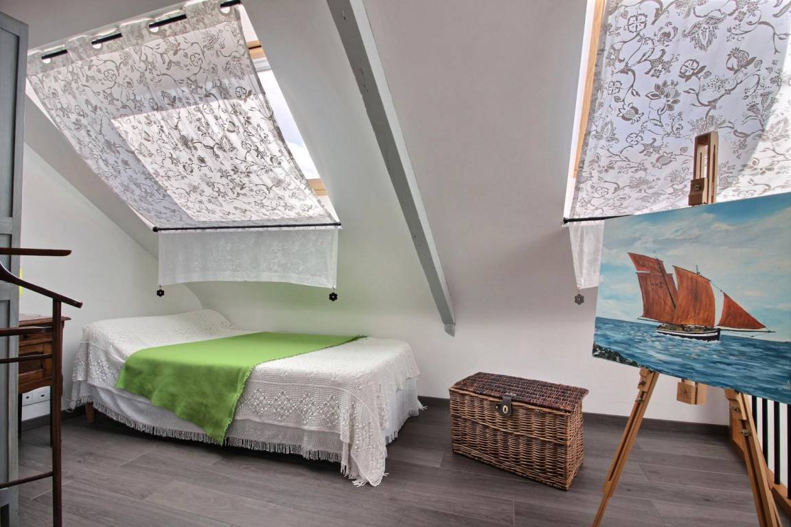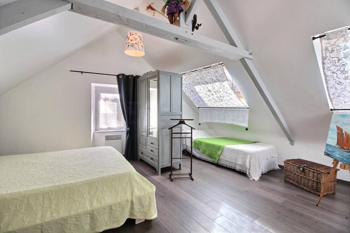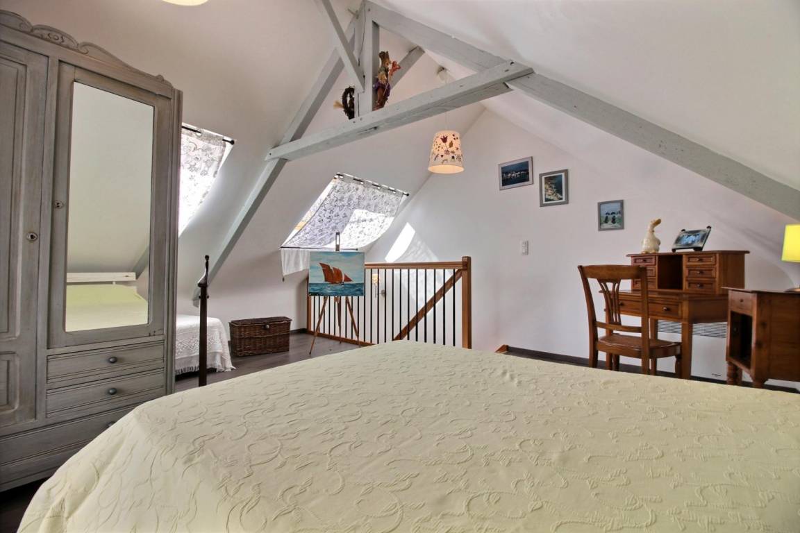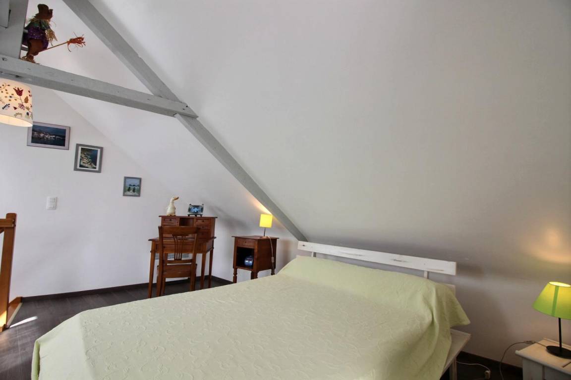 Obergeschoss: 1 großes Schlafzimmer im Zwischengeschoss mit 1 Bett (140 x 190). 18 m² gepflasterte Terrasse mit Gartenmöbeln und Grill. Nur ein Tier akzeptiert.