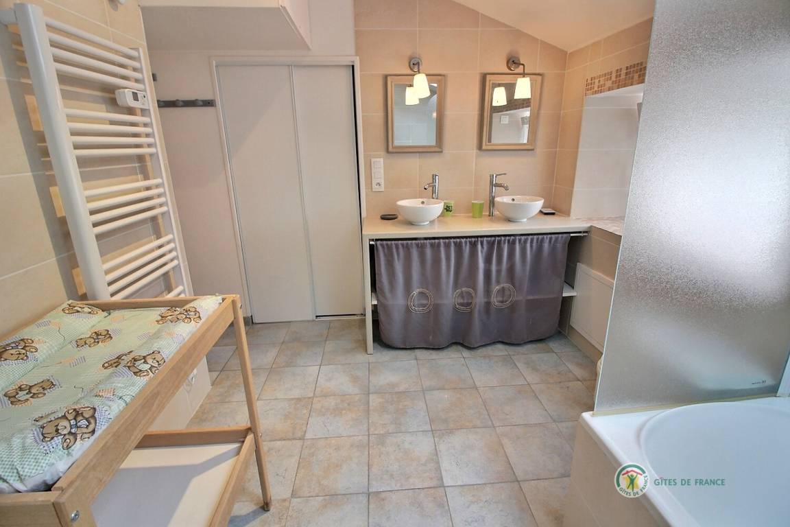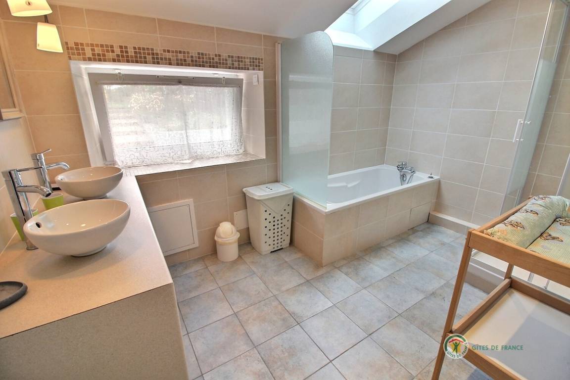 Dieses Ferienhausangebot enthält: Im Erdgeschoss: sehr geräumiges Wohnzimmer, Einbauküche mit Essbereich in einer Veranda, Badezimmer mit Dusche und Badewanne, WC. Im 1. Stockwerk: 1 Schlafzimmer (1 Bett 2 Personen mit kleinem Bad und WC) + 1 Schlafzimmer (2 Betten 1 Person 110x180). Wi-Fi-Internetzugang. Wäschetrockner verfügbar bei den Eigentümern. Baby-Ausstattung. Schaukel. Holzkosten: 20 €/Sack.